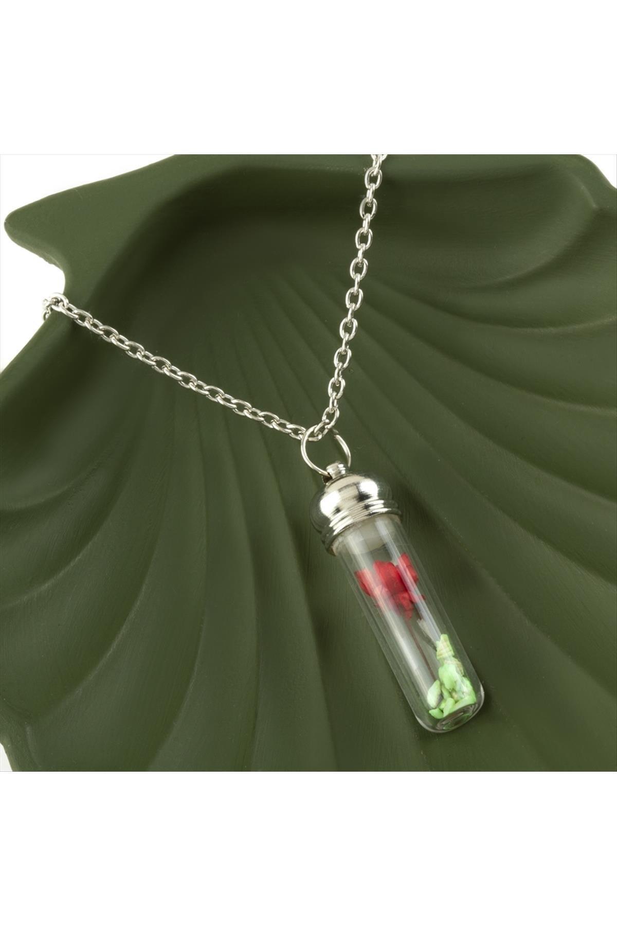 Canlı Kolye;Ürün malzemesi metal ve fanus camdır. Ürün zincir uzunluğu 65 cmdir. Paketiyle beraber gönderilecektir.