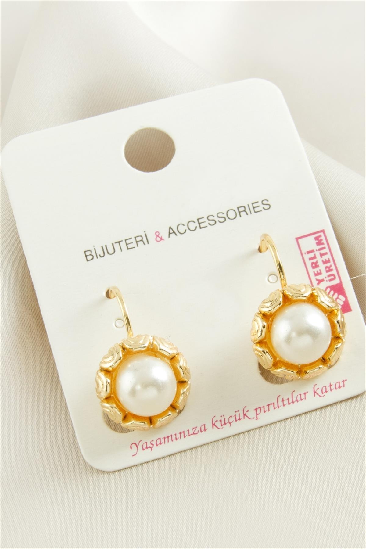 Küpe; Ürün malzemesi inci ve metaldir. Ürün üzeri kaplamalıdır. Ürün boyu 2 cmdir Kartıyla beraber gönderilecektir.
