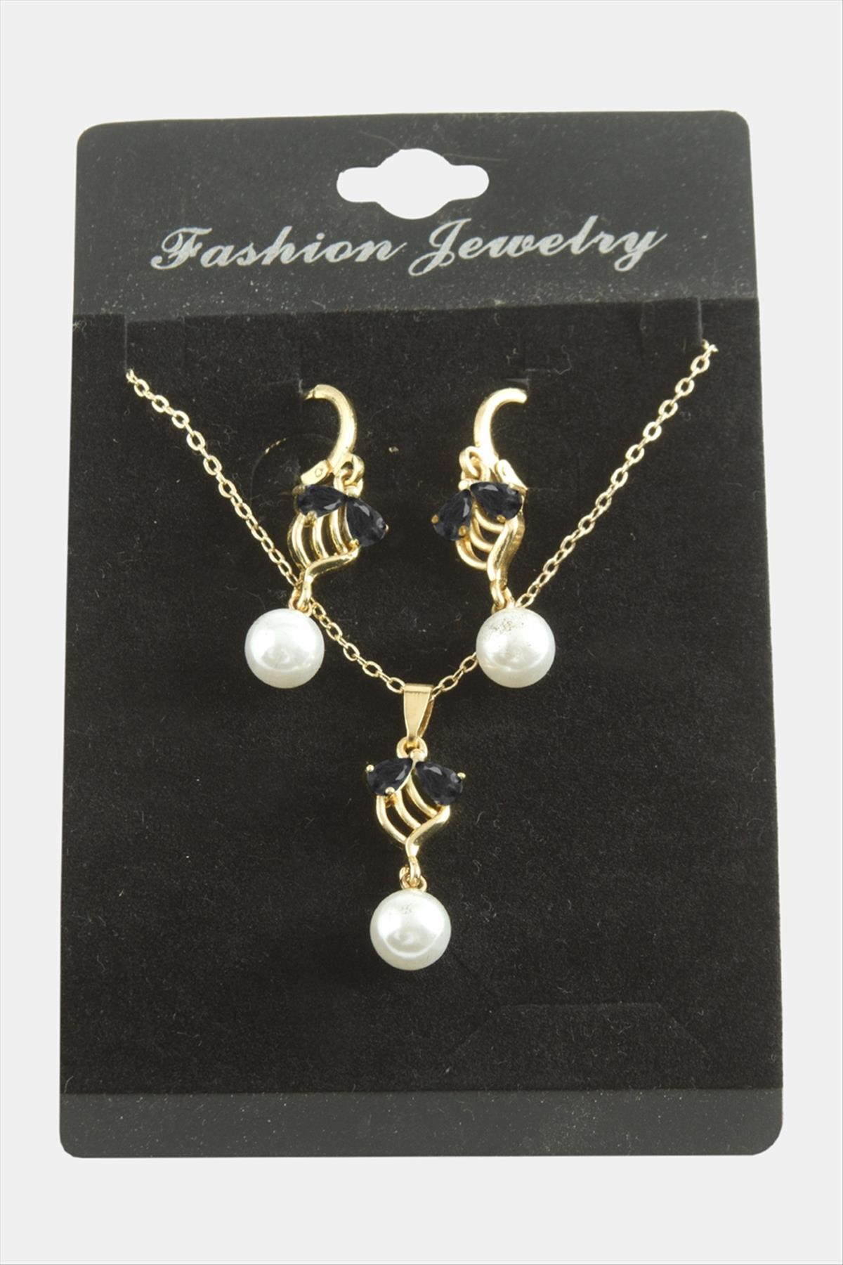 Çiçek İnci Zirkon Taşlı Set Kolye
