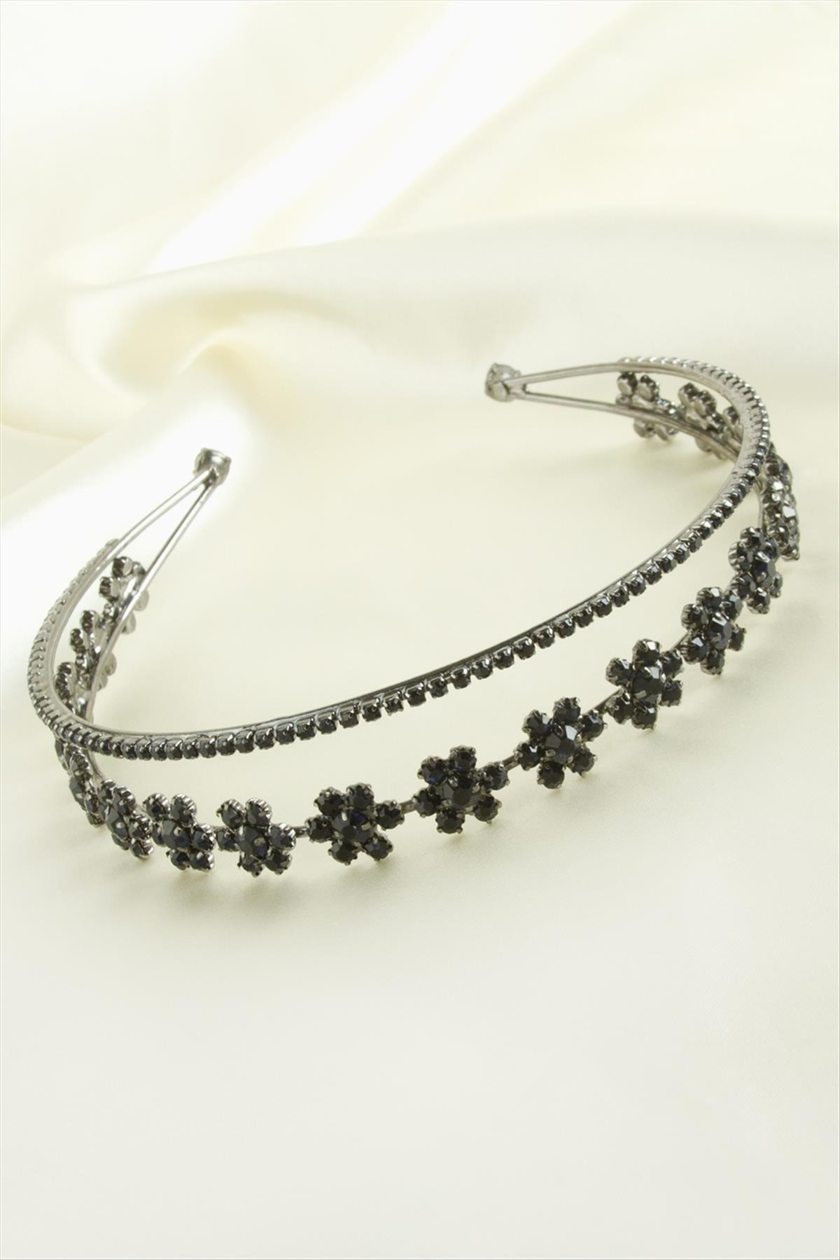 Çiçek Lüks Taşlı Gelin Tacı