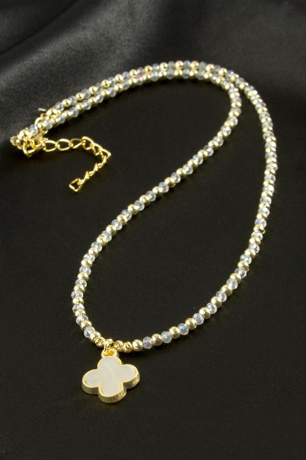 Kolye; Ürün malzemesi dorika, sedef, kristal ve metaldir. Kolye boyu 45 cmdir. Ucundaki figür boyu 1,5 cmdir. Kartlıdır. 1 sınıf kaliteli malzemeden üretilmiştir.