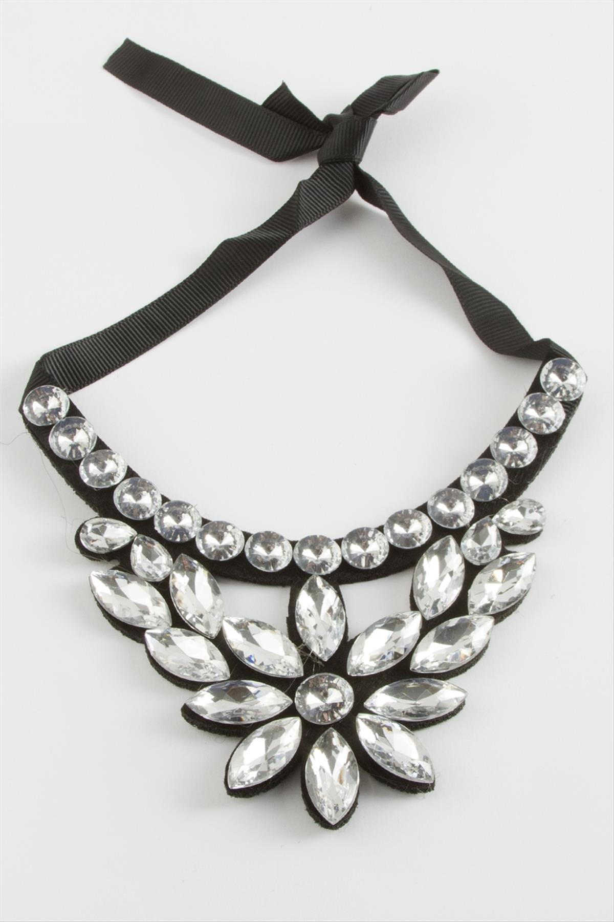 Kolye; Ürün malzemesi plastik taş ve keçedir. Ürün keçe üzerine yapıştırılmış taşlardan üretilmiştir. Ürün bağlama boyu 60 cmdir. Arkasa bağlamalıdır.