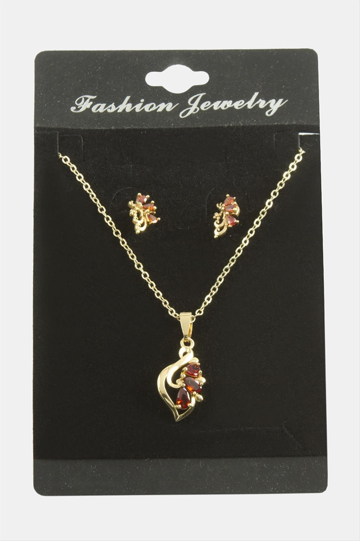 Kolye; Ürün malzemesi metal ve zirkon taştan üretilmiştir. 1 sınıf kaliteli malzeme kullanılmıştır. Ürün 1 adet kolye, ve 1 adet çift küpe vardır. Ürün zincir uzunluğu 45 santimdir. Ürün ucundaki taşlı aparat boyu 2 cmdir.