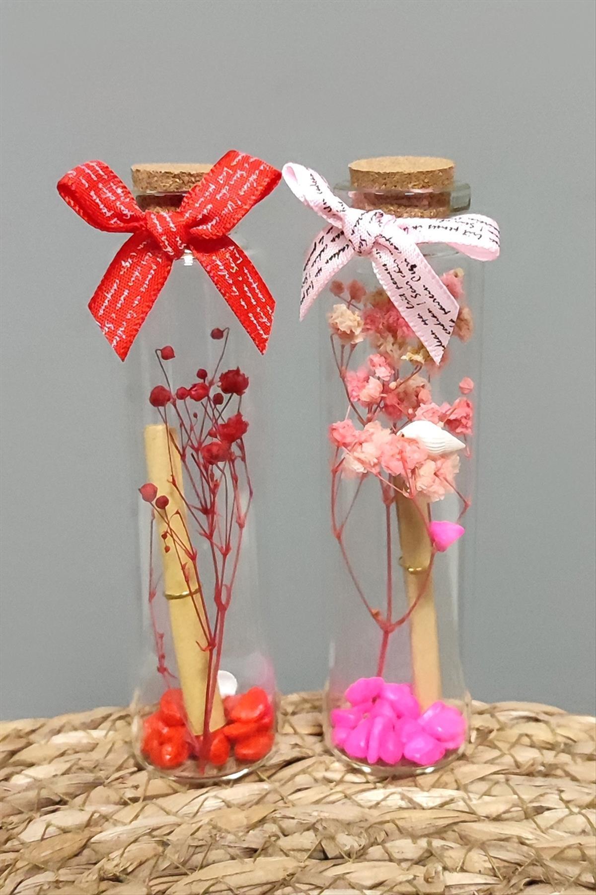 Şişe; Ürün tamamen cam malzemeden üretilmişdir. Şişenin içersinde boncuk ve boş bir kağıt bulunmaktadır. Ürün boyu 11,5 cmdir. Genişliği 2,5 cmdir. Ürün renkleri asortilidir. Siparişlerinizde karışık olarak gönerilecektir.