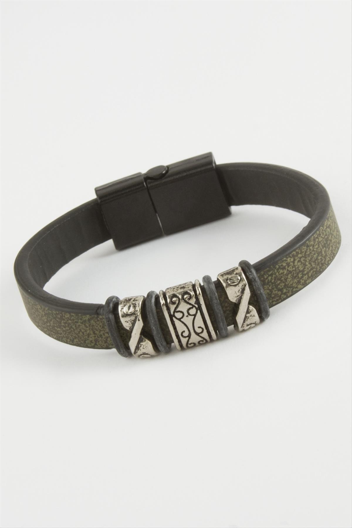 Çini Desenli Kaliteli Mıknatıslı Suni Deri Bileklik
