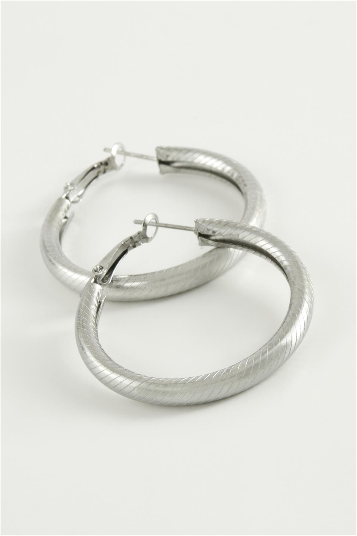 Çizgili Boru Halka Küpe 3,5 cm