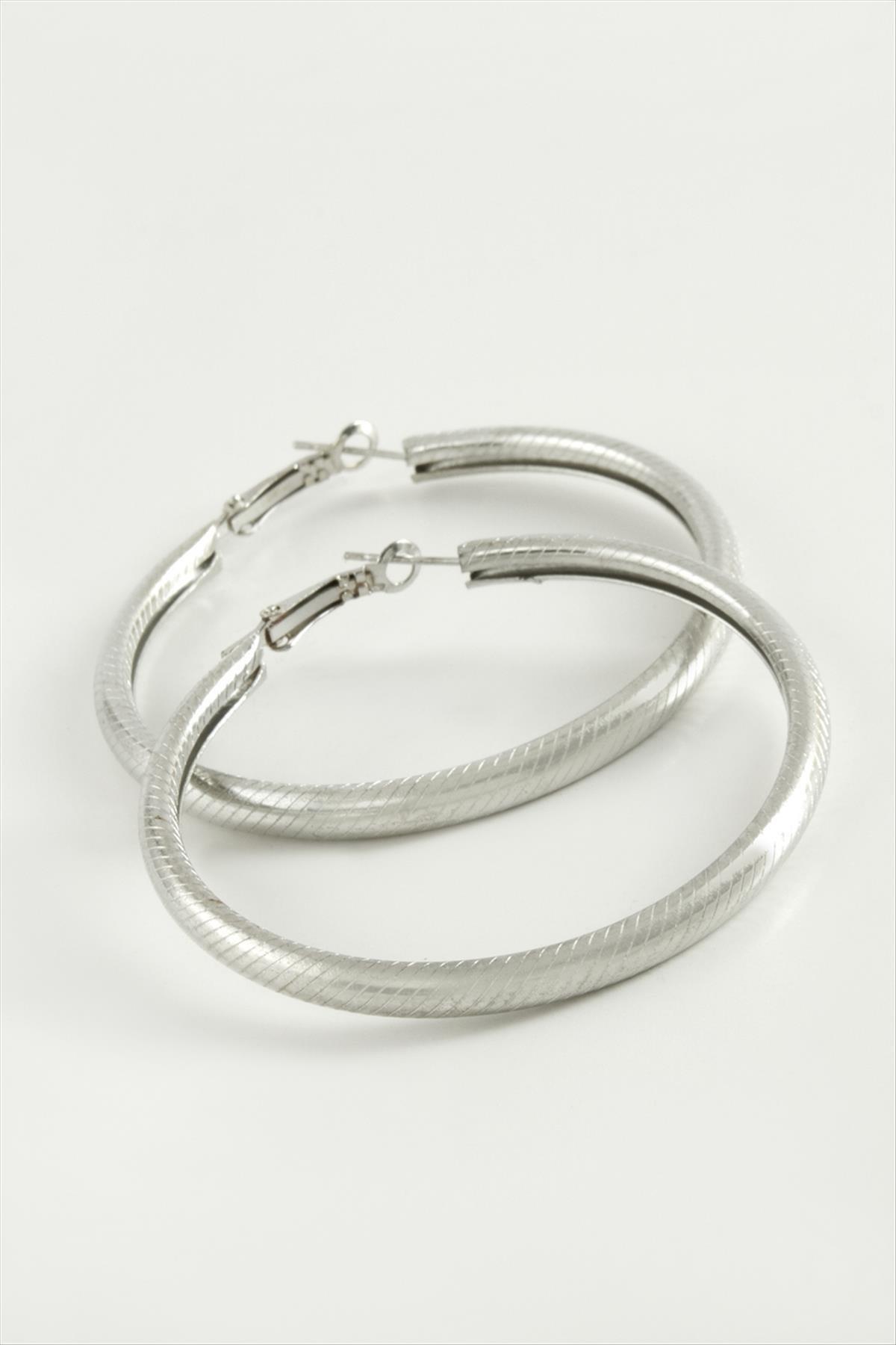 Küpe; Ürün malzemesi metaldir. Küpe halka çapı 5,5 cmdir. Kartlıdır.