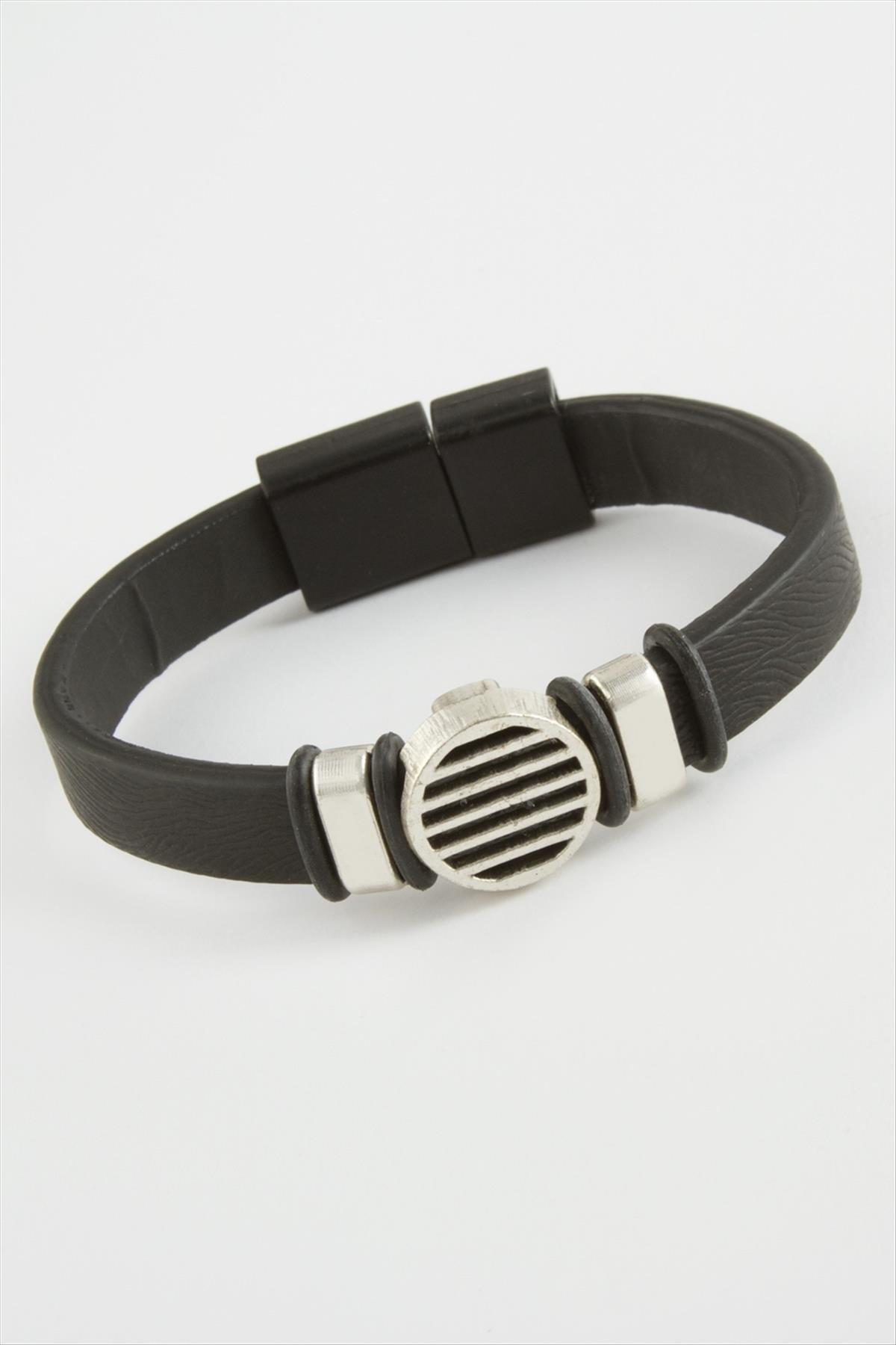 Çizgili Kaliteli Mıknatıslı Suni Deri Bileklik