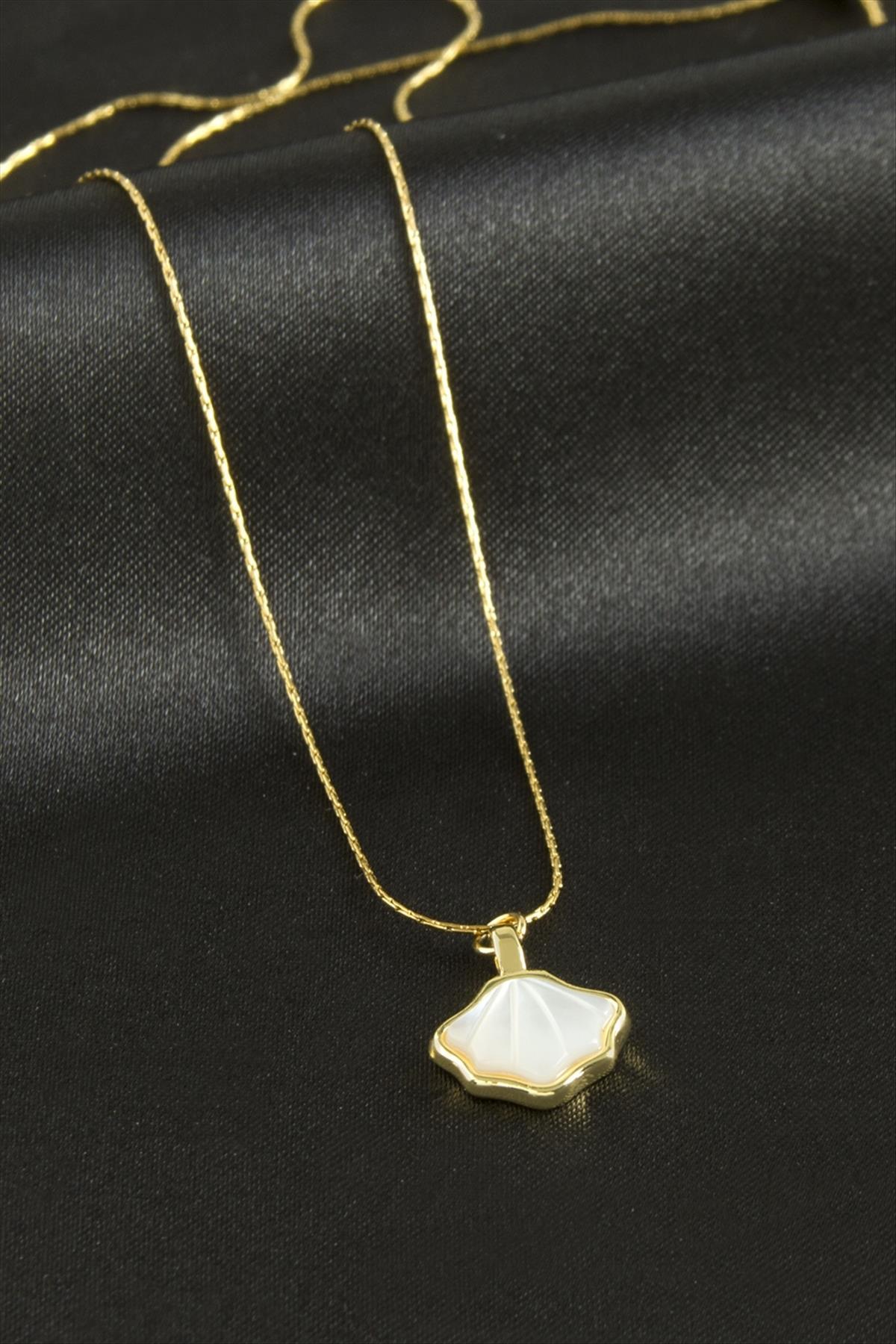 Kolye; Ürün malzemesi sedef ve çeliktir. Kararma yapmaz. 1 nci sınıf kaliteli malzemeden üretilmiştir. Zincir uzunluğu 50 cm ve ucundaki aparat boyu 2 cmdir. Kartlı ve paketiyle beraber gönderilecektir.