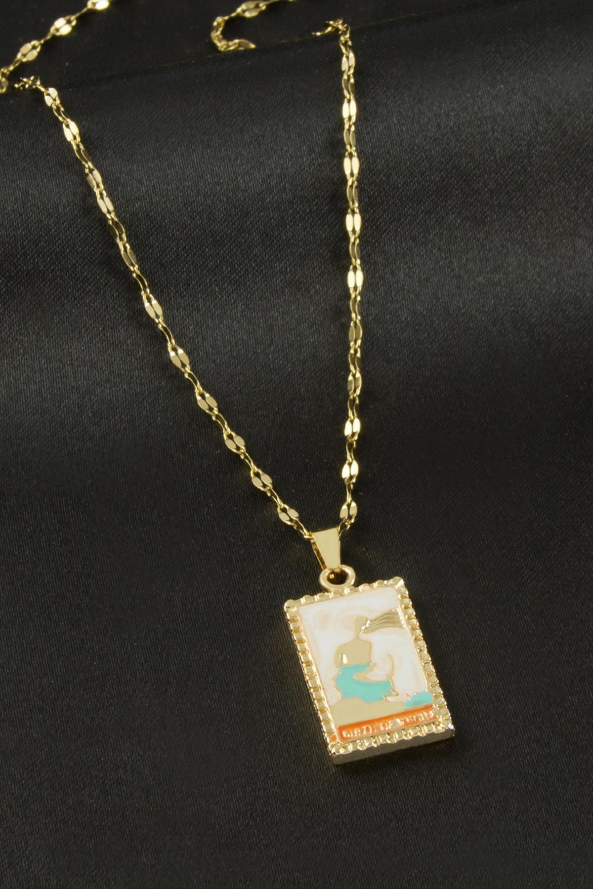 Kolye; Ürün zincir bölümü çeliktir. Zincir uzunluğu 45 cm ve ucundaki aparat boyu 2,5 cmdir. Kartlı ve paketlidir.