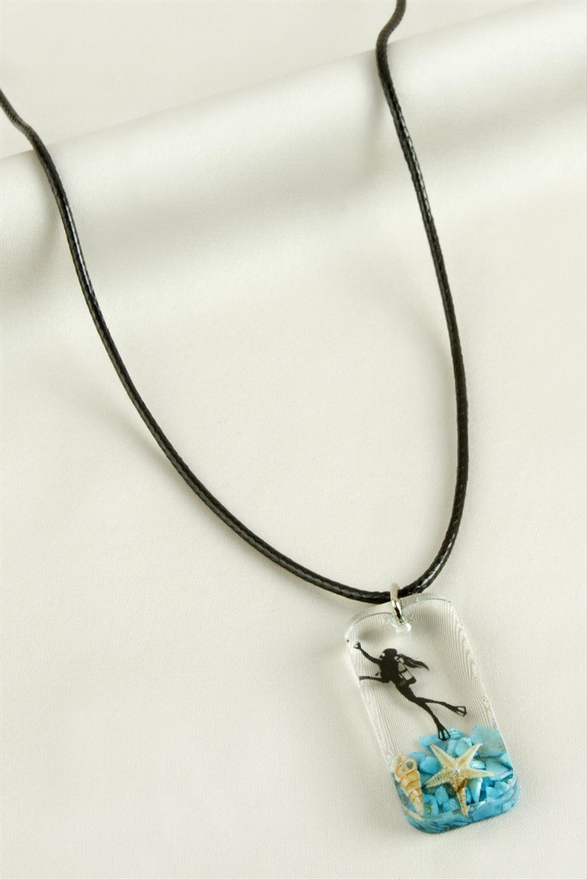 Deniz Kızı Dikdörtgen Epoksi Kolye