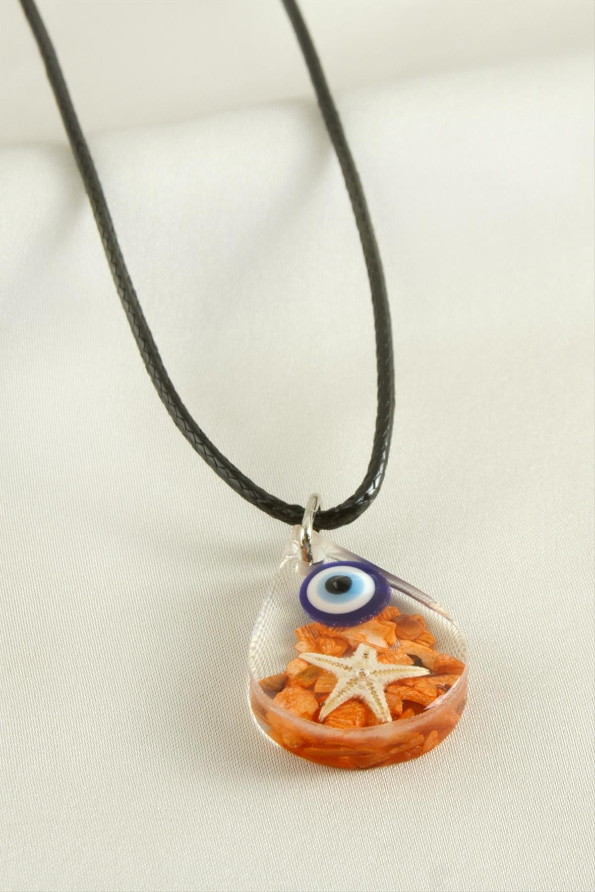 Epoksi Kolye; Ürün malzemesi deri ve epoksi malzemeden üretilmiştir. Ürün 1 sınıf kristal epoksi malzeme kullanılmıştır. Kolye deri ip uzunluğu 50 cm ve ucundaki epoksi 2,5 cmdir.