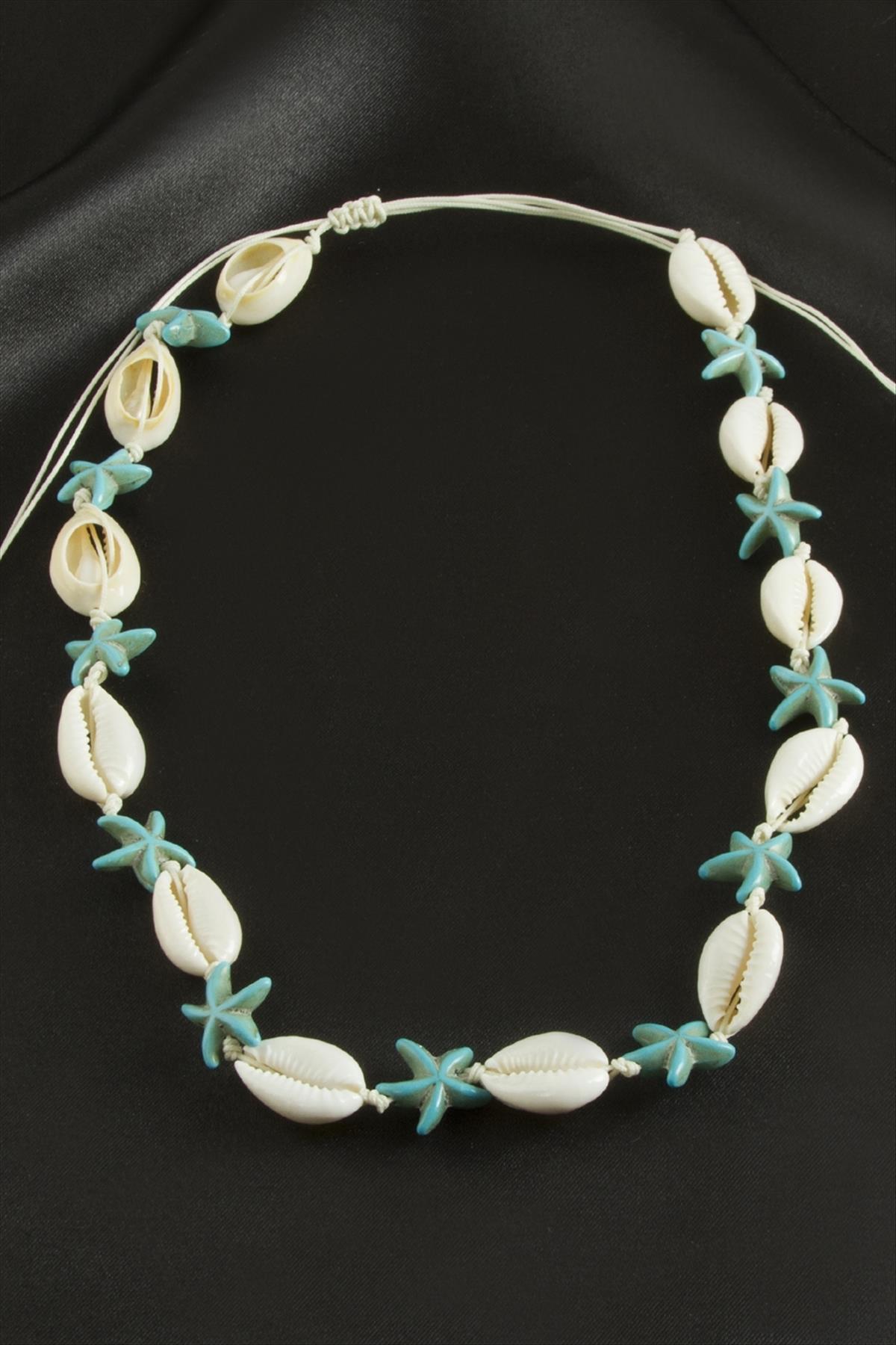 Kolye; Ürün malzemesi gerçek istiridye ve makrome iptir. Ürün boyu 45 cmdir.