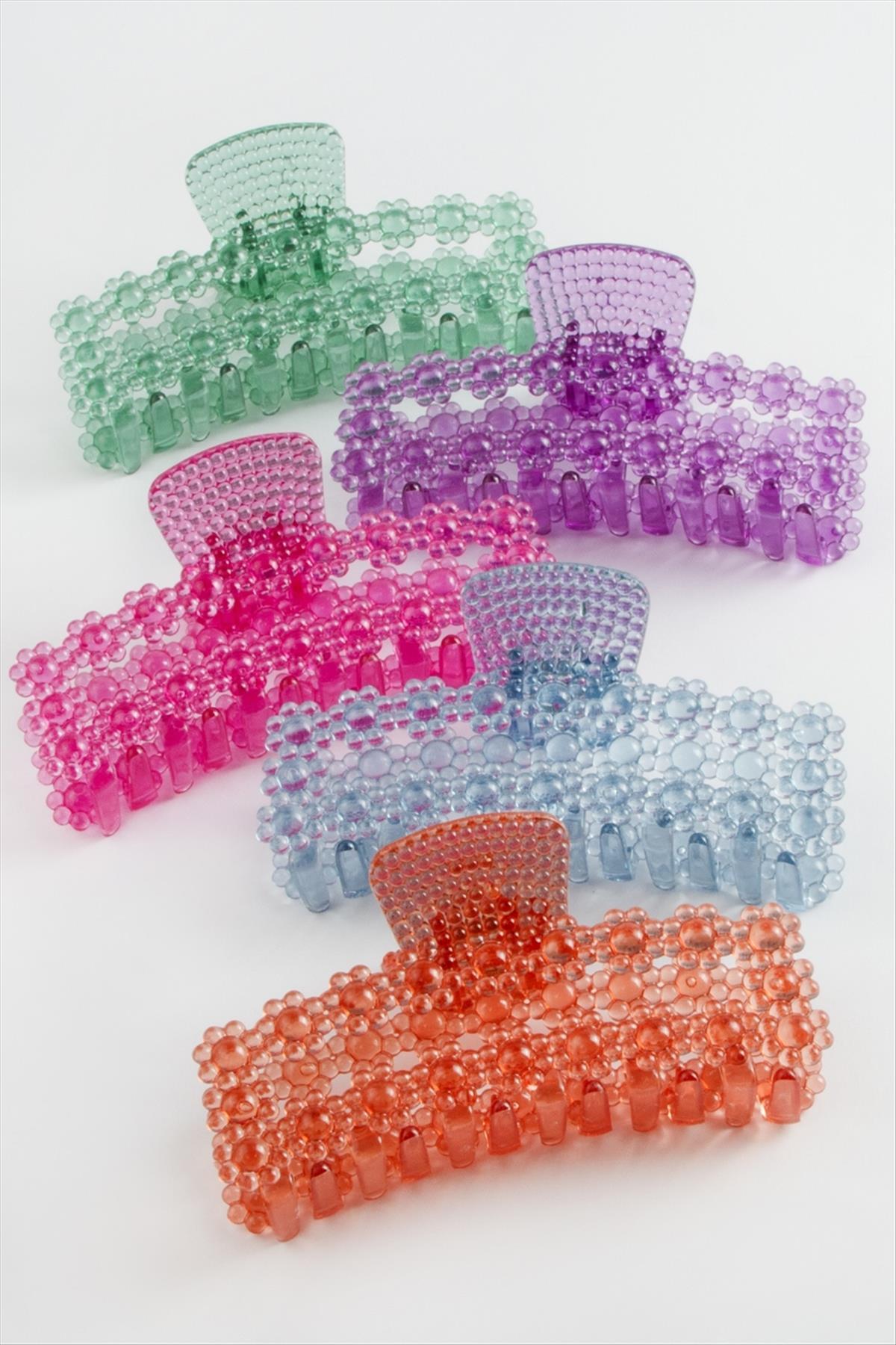 Dikdörtgen Çiçekli Şeffaf Renkli Mandal Toka 11 cm