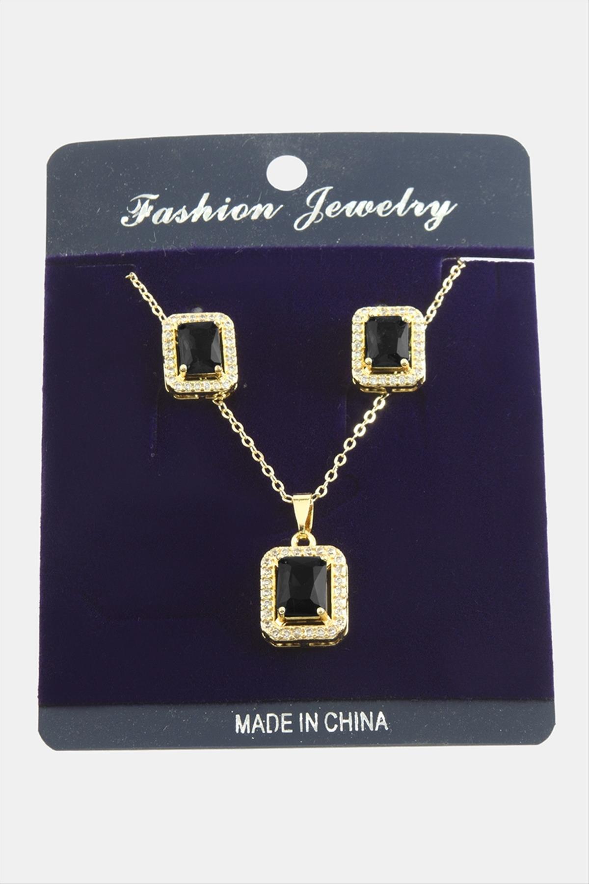 Dikdörtgen Zirkon Taşlı Set Kolye