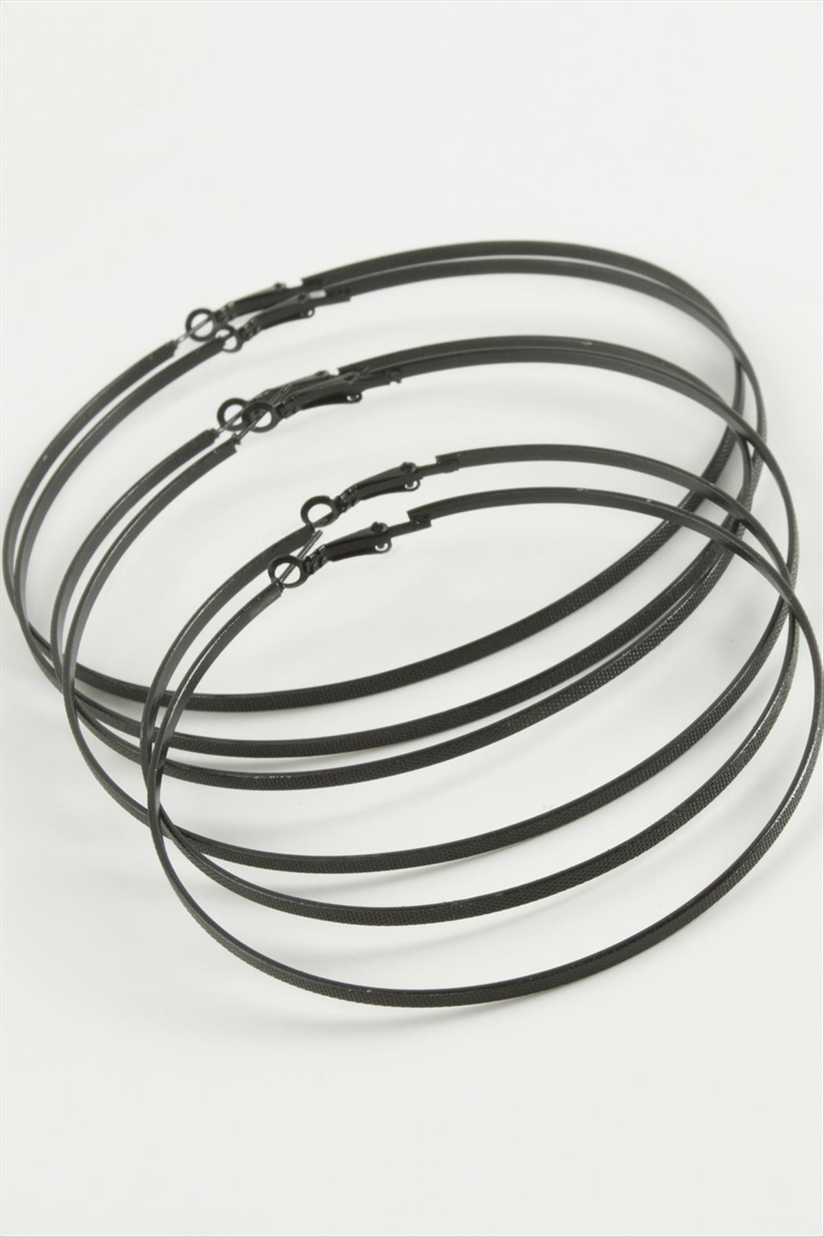 Küpe; Ürün malzemesi metal ve kartlıdır. 1 kartta 6 adet halka küpe olarak satılmaktadır. Halka çapı 8-9-10 cmdir.
