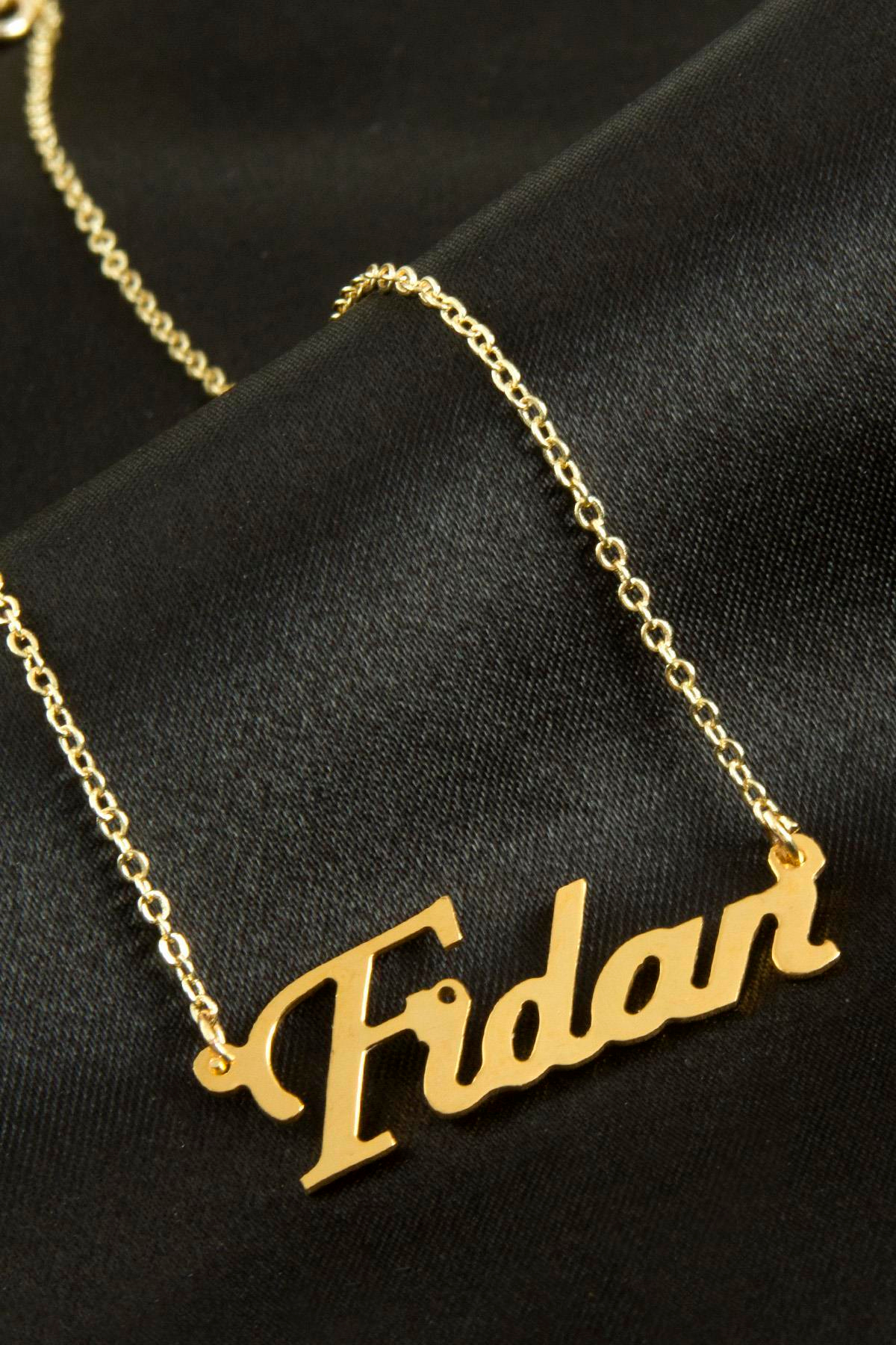 Fidan isimli kolye. İsimli kolye pirinç madeninden ve altın kaplamalıdır. Kişiye özel üretilmektedir.Yazdırmak istediğiniz ismi bize mesaj olarak iletmeniz gerekmektedir. Kullanıma bağlı olarak uzun süre kullanıma uygundur. Ürün malzemesi 1.sınıf kalitededir. Ürün ve zinciri sarı renktedir. Ürün zincir boyu 45 cm ve ürün üzerindeki isimler yaklaşık 3 cmdir. İsim boyları ürün ismine göre degişiklik göstermektedir.