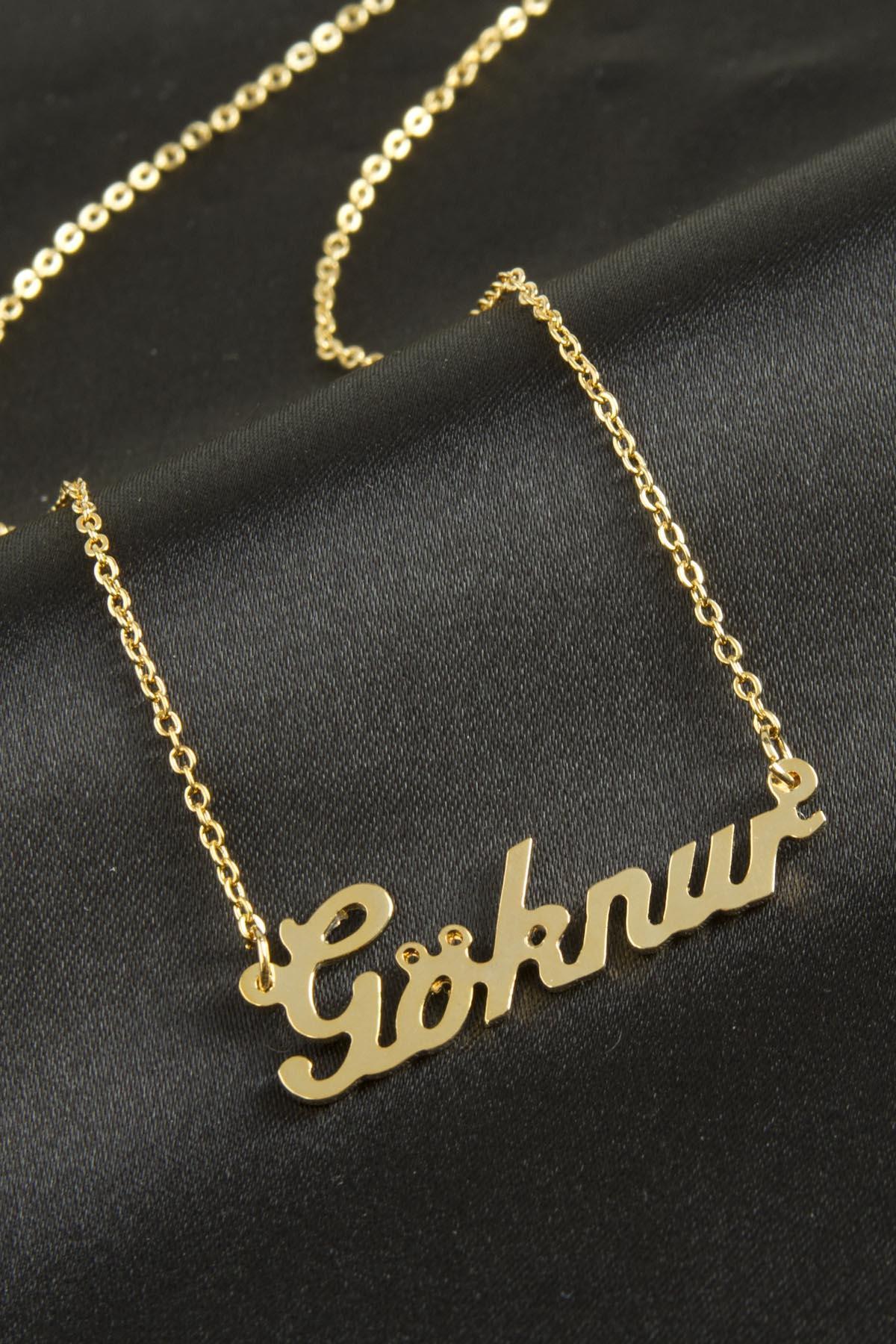 Göknur isimli kolye. İsimli kolye pirinç madeninden ve altın kaplamalıdır. Kişiye özel üretilmektedir.Yazdırmak istediğiniz ismi bize mesaj olarak iletmeniz gerekmektedir. Kullanıma bağlı olarak uzun süre kullanıma uygundur. Ürün malzemesi 1.sınıf kalitededir. Ürün ve zinciri sarı renktedir. Ürün zincir boyu 45 cm ve ürün üzerindeki isimler yaklaşık 3 cmdir. İsim boyları ürün ismine göre degişiklik göstermektedir.