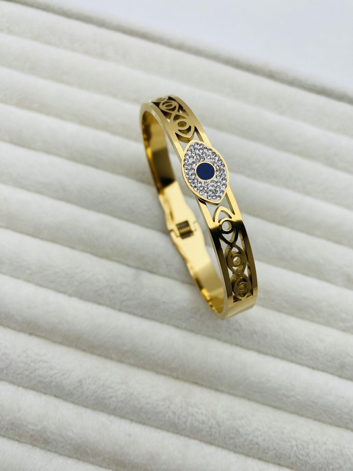 Göz Detaylı Taşlı Çelik Kelepçe (Gold) 1440