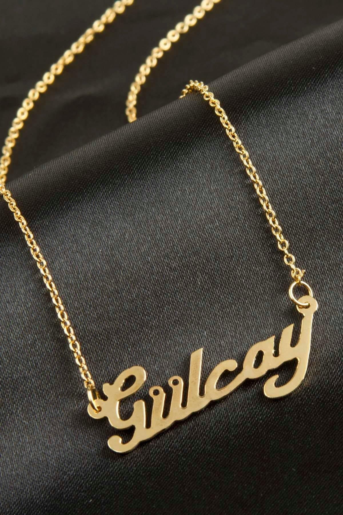 Gülcay İsimli Kolye. İsimli kolye pirinç madeninden ve altın kaplamalıdır. Kişiye özel üretilmektedir.Yazdırmak istediğiniz ismi bize mesaj olarak iletmeniz gerekmektedir. Kullanıma bağlı olarak uzun süre kullanıma uygundur. Ürün malzemesi 1.sınıf kalitededir. Ürün ve zinciri sarı renktedir. Ürün zincir boyu 45 cm ve ürün üzerindeki isimler yaklaşık 3 cmdir. İsim boyları ürün ismine göre degişiklik göstermektedir.