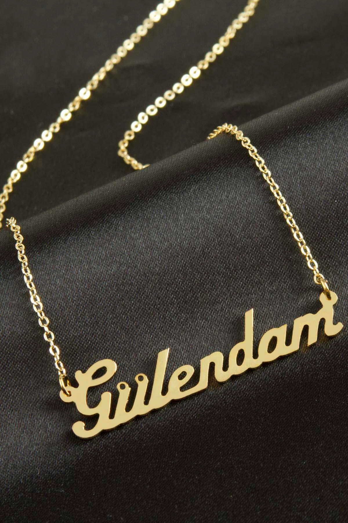 Gülendam İsimli Kolye. İsimli kolye pirinç madeninden ve altın kaplamalıdır. Kişiye özel üretilmektedir.Yazdırmak istediğiniz ismi bize mesaj olarak iletmeniz gerekmektedir. Kullanıma bağlı olarak uzun süre kullanıma uygundur. Ürün malzemesi 1.sınıf kalitededir. Ürün ve zinciri sarı renktedir. Ürün zincir boyu 45 cm ve ürün üzerindeki isimler yaklaşık 3 cmdir. İsim boyları ürün ismine göre degişiklik göstermektedir.