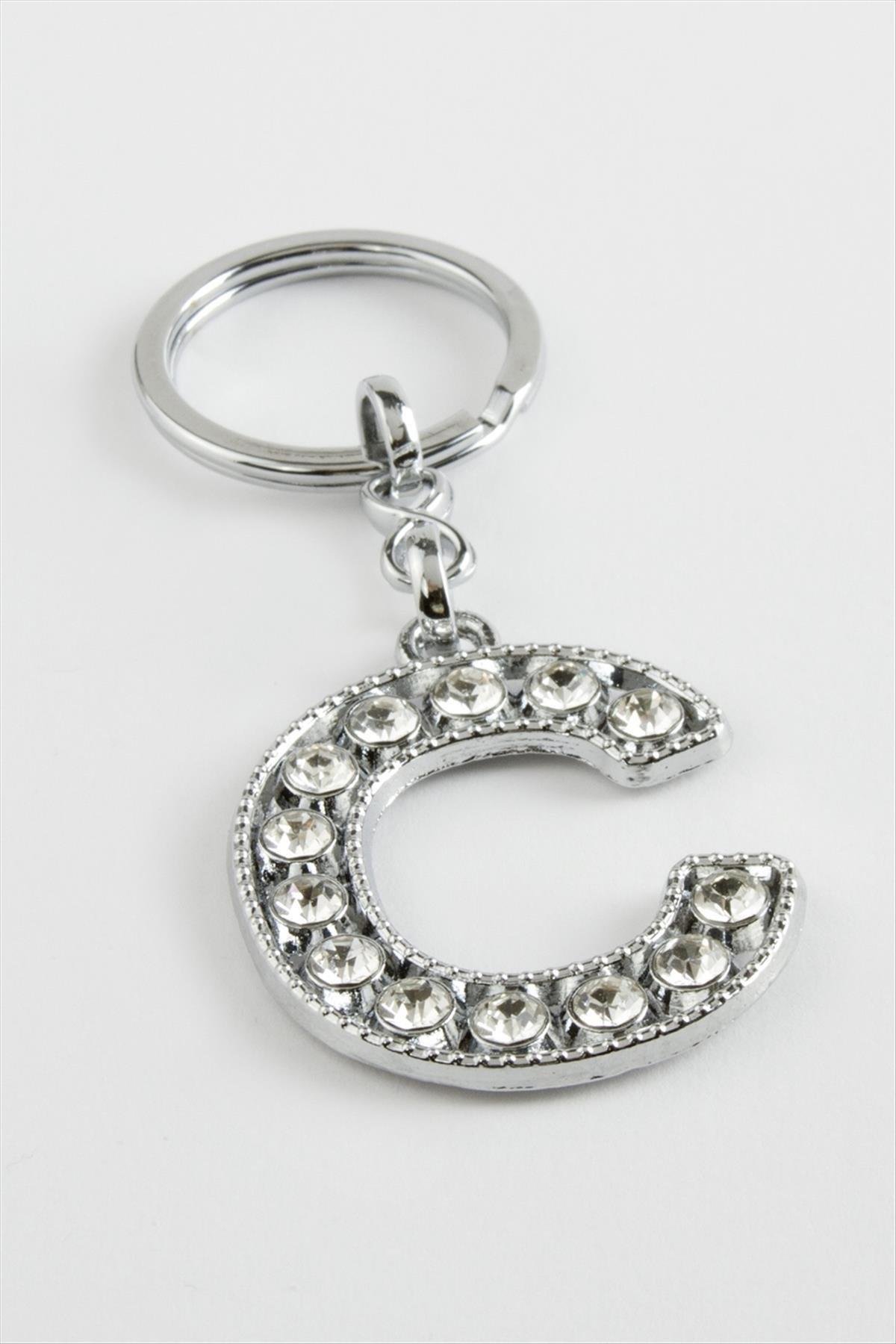 Gümüş Renkli Taşlı Harf Anahtarlık