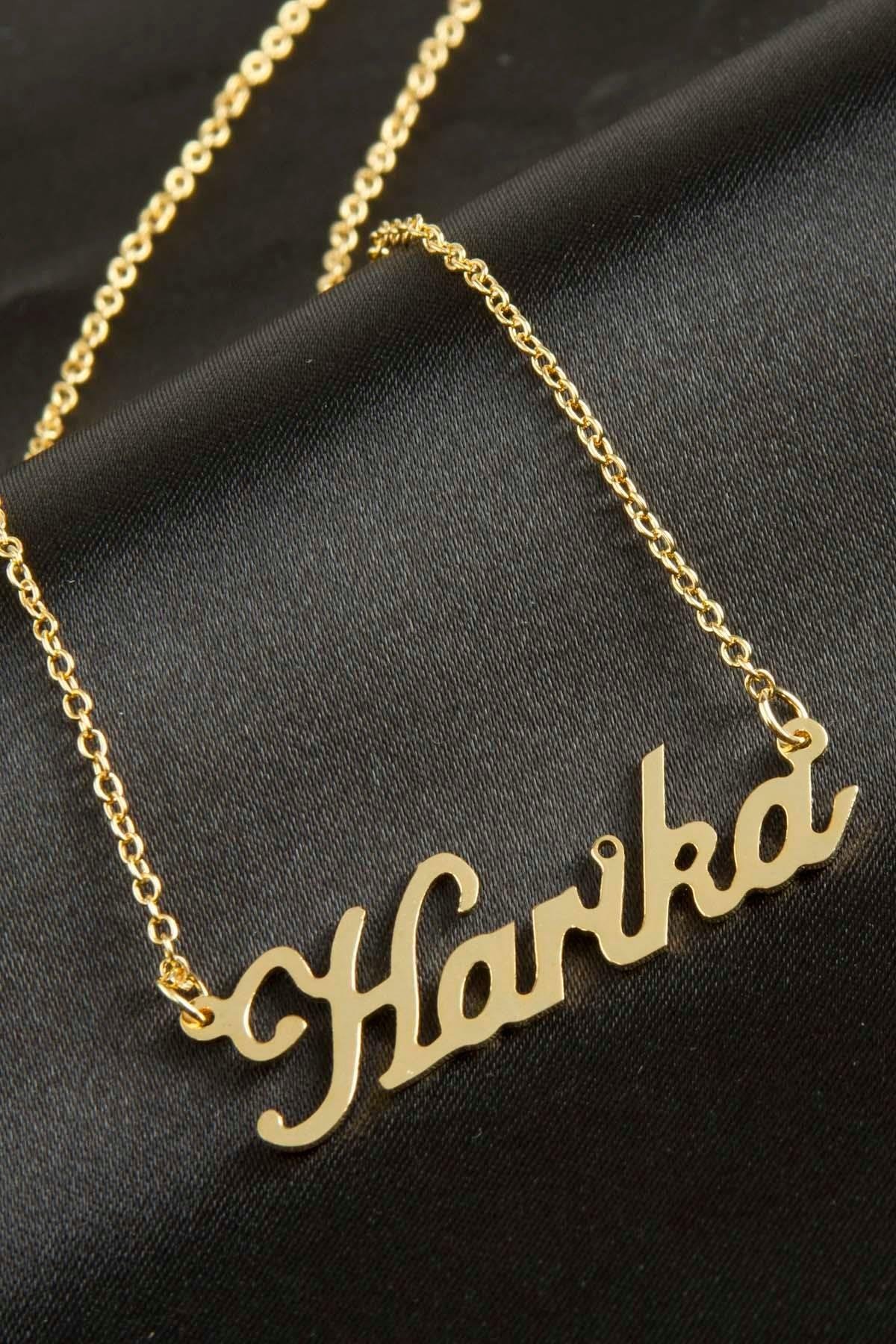 Harika İsimli Kolye. İsimli kolye pirinç madeninden ve altın kaplamalıdır. Kişiye özel üretilmektedir.Yazdırmak istediğiniz ismi bize mesaj olarak iletmeniz gerekmektedir. Kullanıma bağlı olarak uzun süre kullanıma uygundur. Ürün malzemesi 1.sınıf kalitededir. Ürün ve zinciri sarı renktedir. Ürün zincir boyu 45 cm ve ürün üzerindeki isimler yaklaşık 3 cmdir. İsim boyları ürün ismine göre degişiklik göstermektedir.