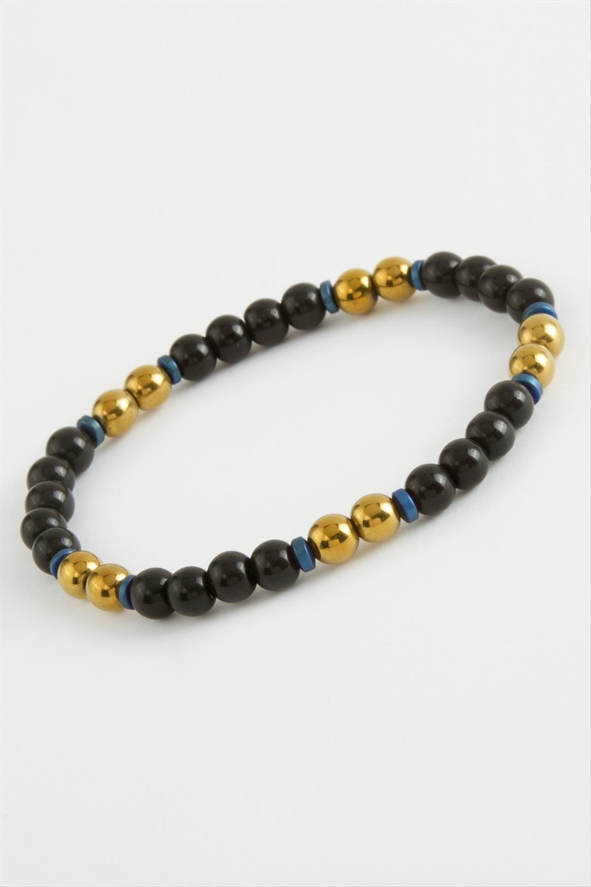Doğaltaş Bileklik; Ürün malzemesi hematit ve onix doğaltaştan imal edilmiştir. Ürün malzemesi misina üzerine dizilmiştir. Ürün taş boyları 6 mmdir.