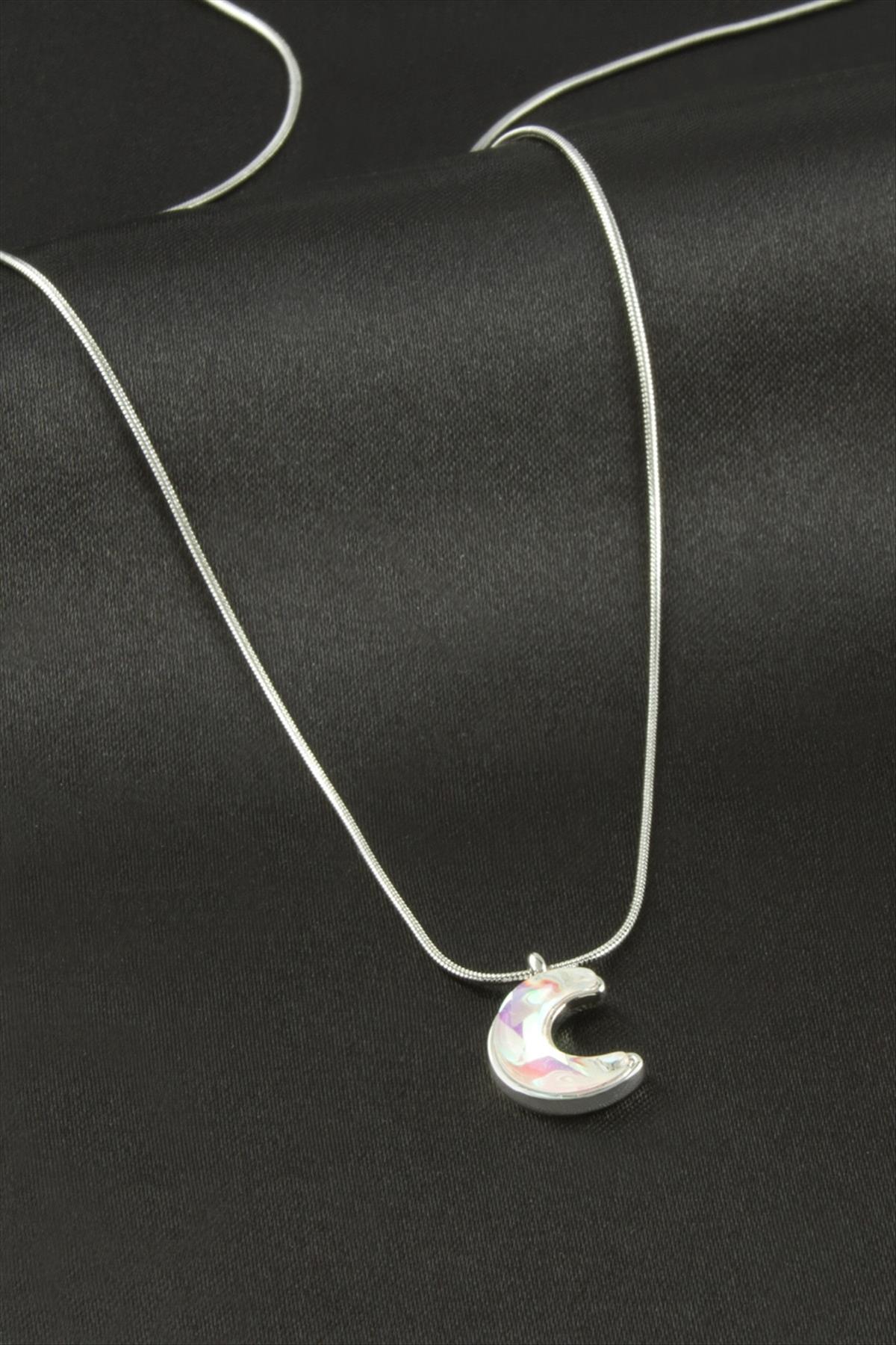 Kolye; Ürün malzemesi zincir bölümü çeliktir. Zincir uzunluğu 40 cm ve ucundaki cam taş boyu 1 cmdir. Kartlıdır.