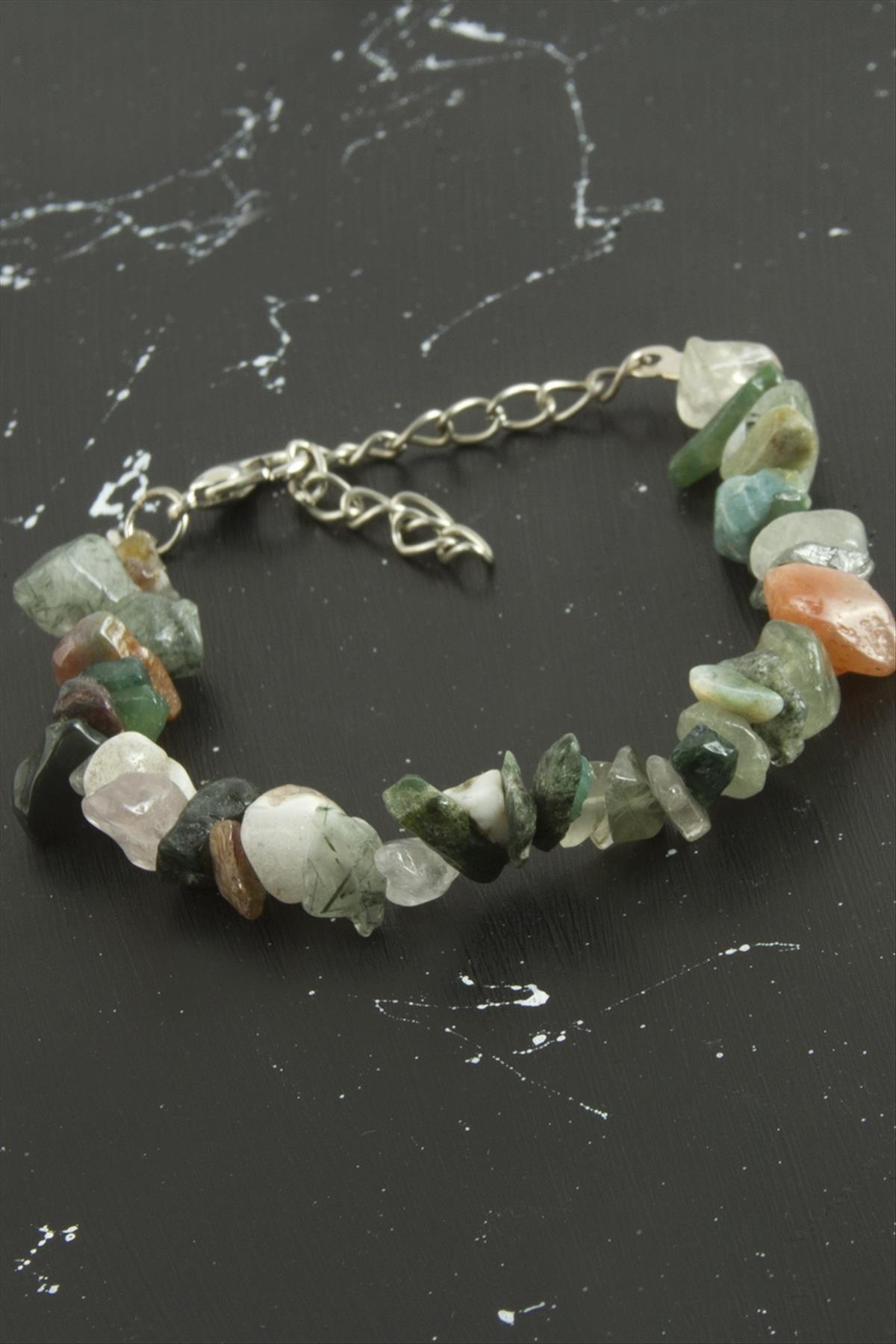 Bileklik; Ürün malzemesi hint akik doğal taşından imal edilmiştir. Ürün uzunluğu 19 cmdir.
