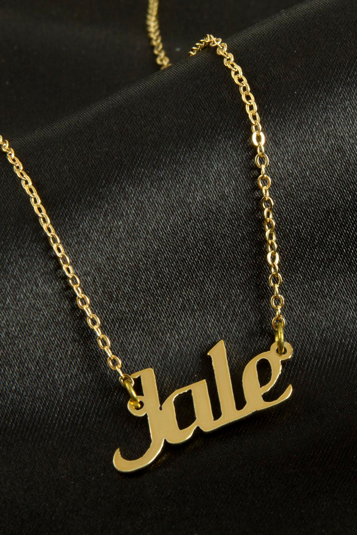 jale isimli kolye. İsimli kolye pirinç madeninden ve altın kaplamalıdır. Kişiye özel üretilmektedir.Yazdırmak istediğiniz ismi bize mesaj olarak iletmeniz gerekmektedir. Kullanıma bağlı olarak uzun süre kullanıma uygundur. Ürün malzemesi 1.sınıf kalitededir. Ürün ve zinciri sarı renktedir. Ürün zincir boyu 45 cm ve ürün üzerindeki isimler yaklaşık 3 cmdir. İsim boyları ürün ismine göre degişiklik göstermektedir.