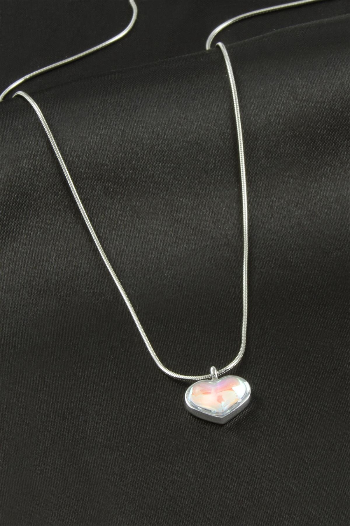 Kolye; Ürün malzemesi zincir bölümü çeliktir. Zincir uzunluğu 40 cm ve ucundaki cam taş boyu 1,2 cmdir. Kartlıdır.