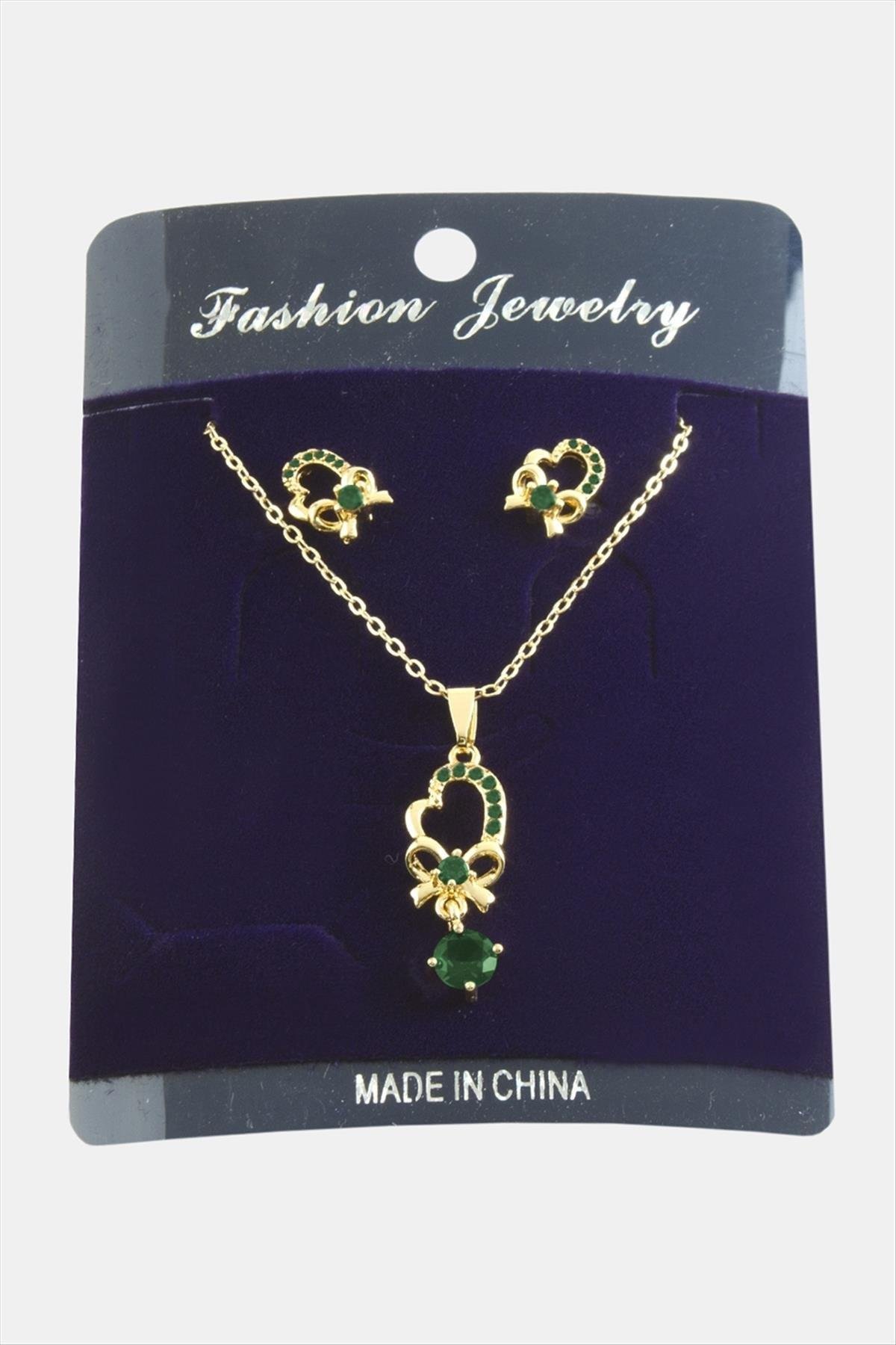 Kalp Fiyong Zirkon Taşlı Set Kolye