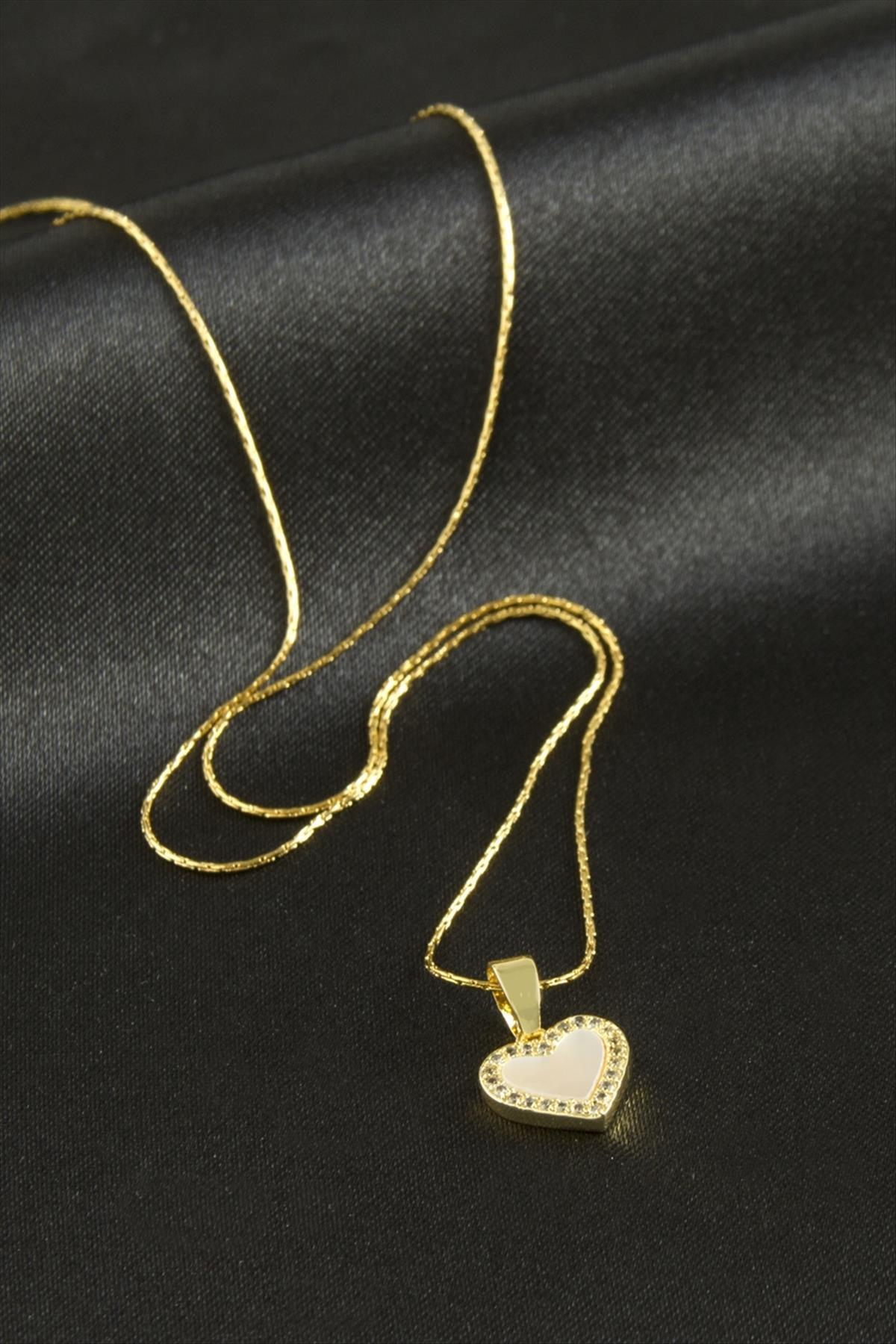 Kolye; Ürün malzemesi sedef, zirkon taş ve çeliktir. Kararma yapmaz. 1 nci sınıf kaliteli malzemeden üretilmiştir. Zincir uzunluğu 50 cm ve ucundaki aparat boyu 2 cmdir. Kartlı ve paketiyle beraber gönderilecektir.