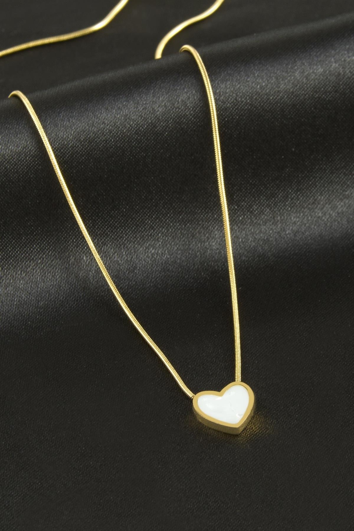 Kolye; Ürün malzemesi sedef, zirkon taş ve çeliktir. Kararma yapmaz. 1 nci sınıf kaliteli malzemeden üretilmiştir. Zincir uzunluğu 50 cm ve ucundaki aparat boyu 1,5 cmdir. Kartlı ve paketiyle beraber gönderilecektir.