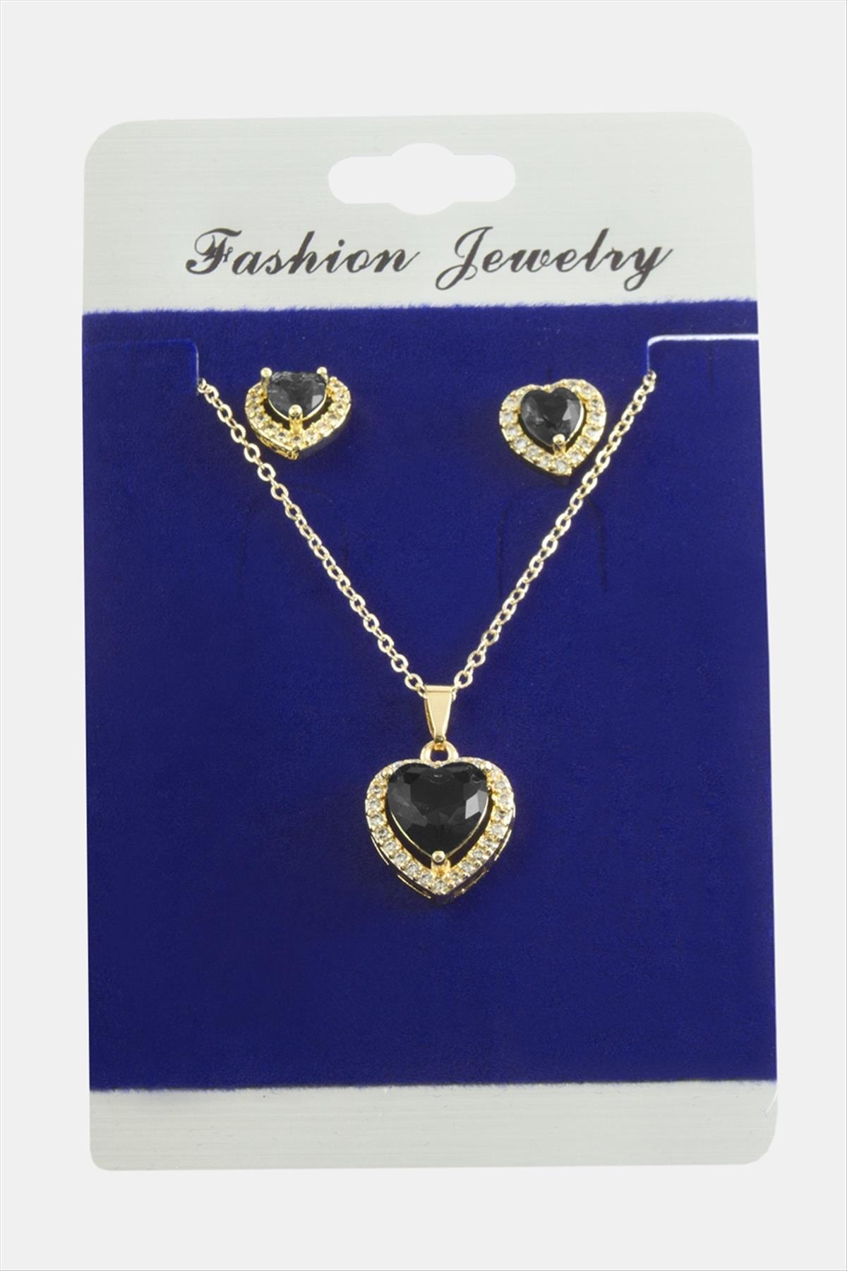 Kalp Zirkon Taşlı Set Kolye