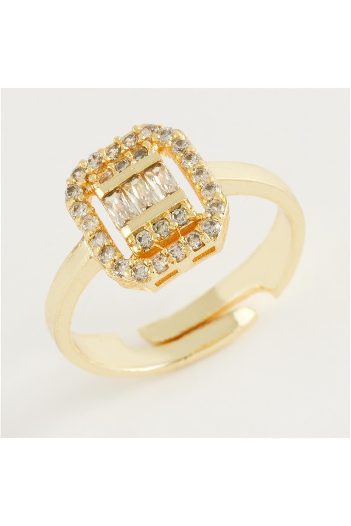 Yüzük; Ürün malzemesi baget taş ve metaldir. Ürün numarası parmağa göre ayarlanabilir.