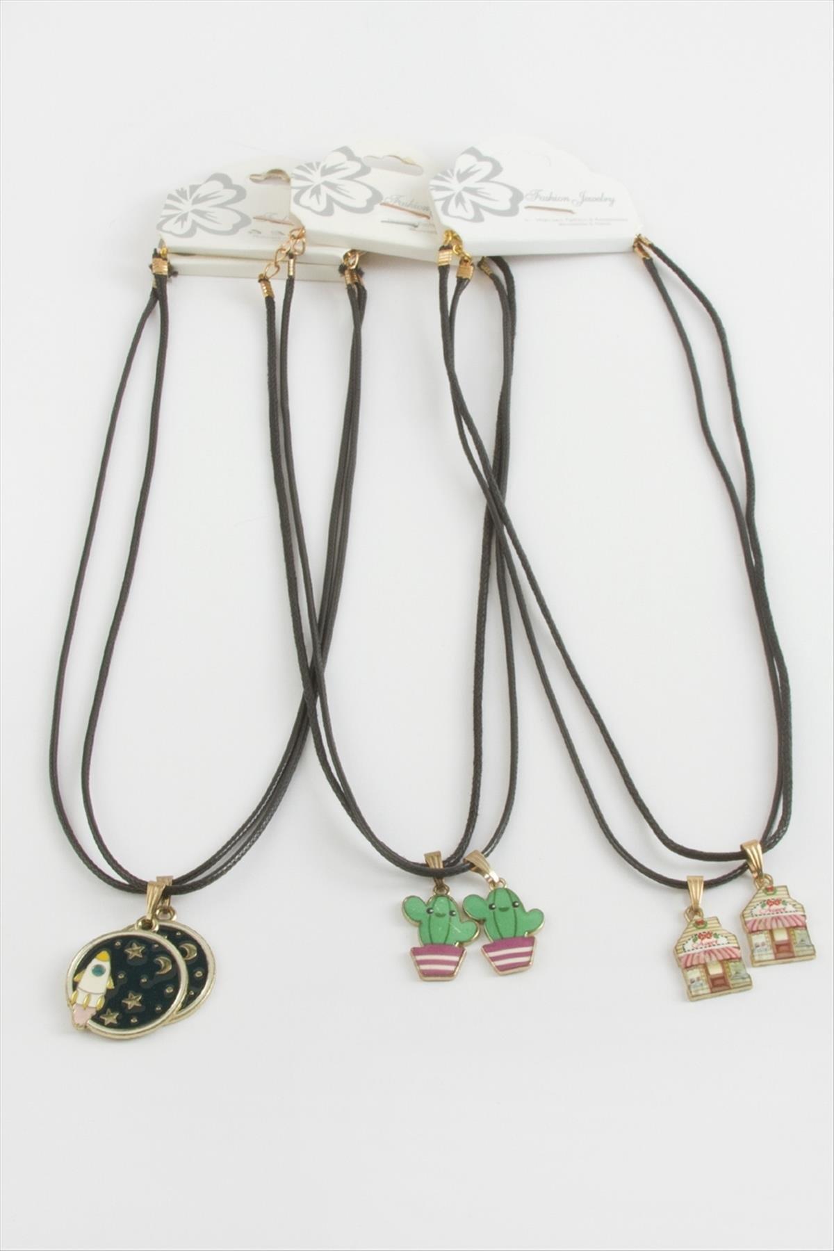 Arkadaşlık Kolye; Ürün malzemesi vinlex deridir. Ürü boyu 45 cmdir. 1 kartta 2 adet olarak satılacaktır. Ürün renkleri ve modelleri asortilidir. Siparişlerinizde karışık olarak gönderilecektir.