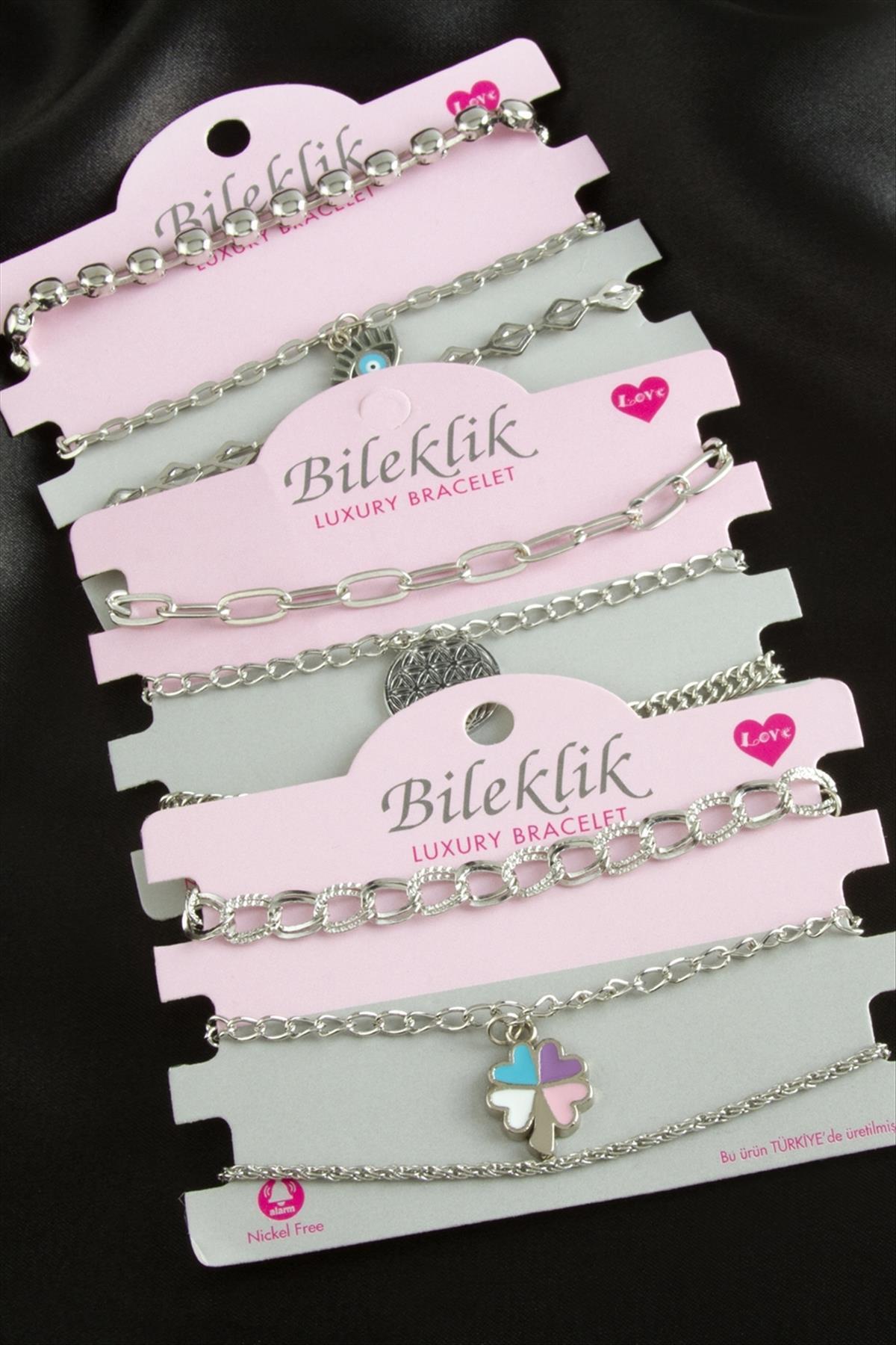 Bileklik; Ürün malzemesi metaldir. Kartıyla beraber gönderilecektir. 3 zincirden üretilmiştir. Zincir uznluğu 19 cmdir. Ürün figürleri asortilidir. Siparişleriniz de karışık olarak gönderilecektir.