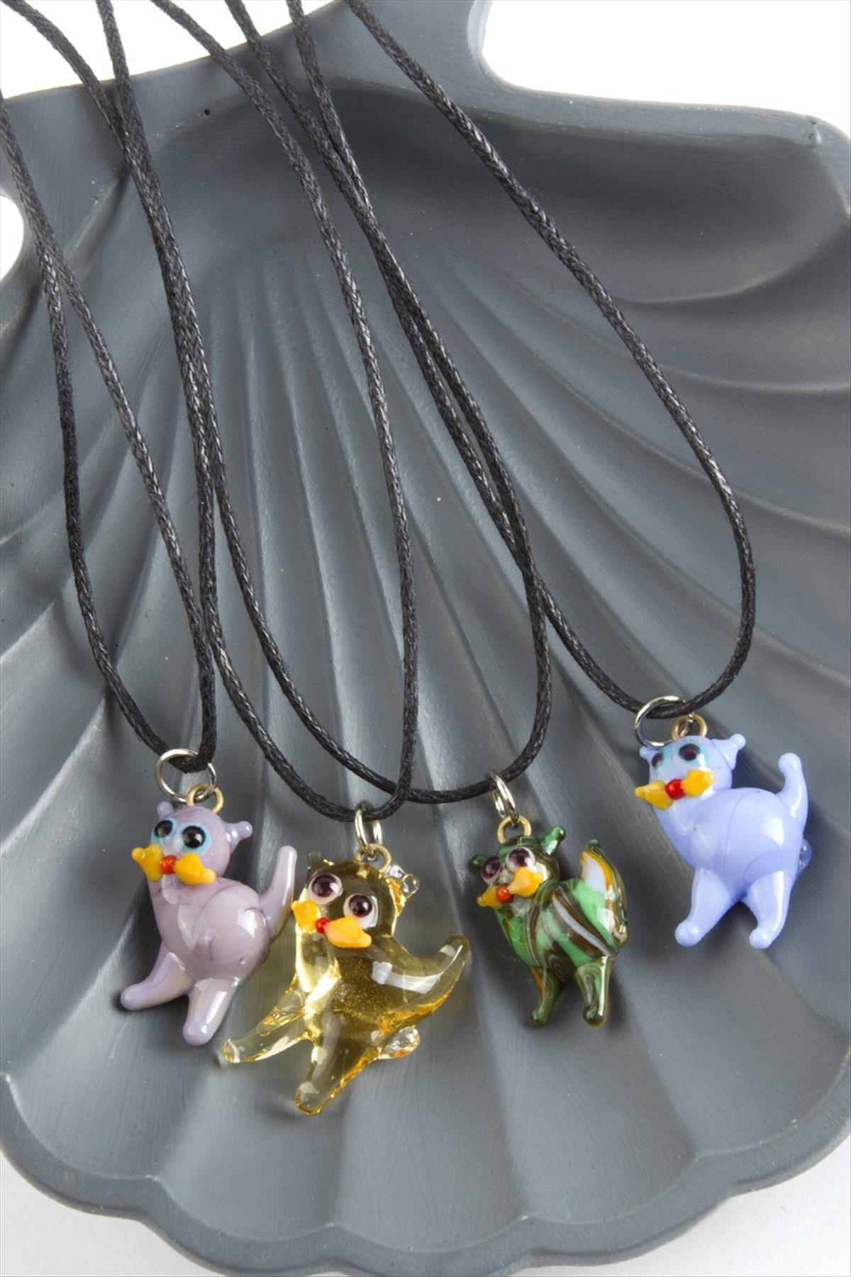 Cam Kolye; Kordonu vinlex deridir. Ürün ustalarımız tarafından atölyemizde tek tek el işçiliği ile üretilmektedir. İmalatımız da yerli cam ve orijinal italyan cam kullanılmaktadır. Cam ürünlerinde sanatsal bir işçilikle çalışılmaktadır. Ürün asortilidir. Siparişleriniz de karışık olarak gönderilecektir. Ürün cam boyu 1,5 cm ve ip boyu 45 cmdir.