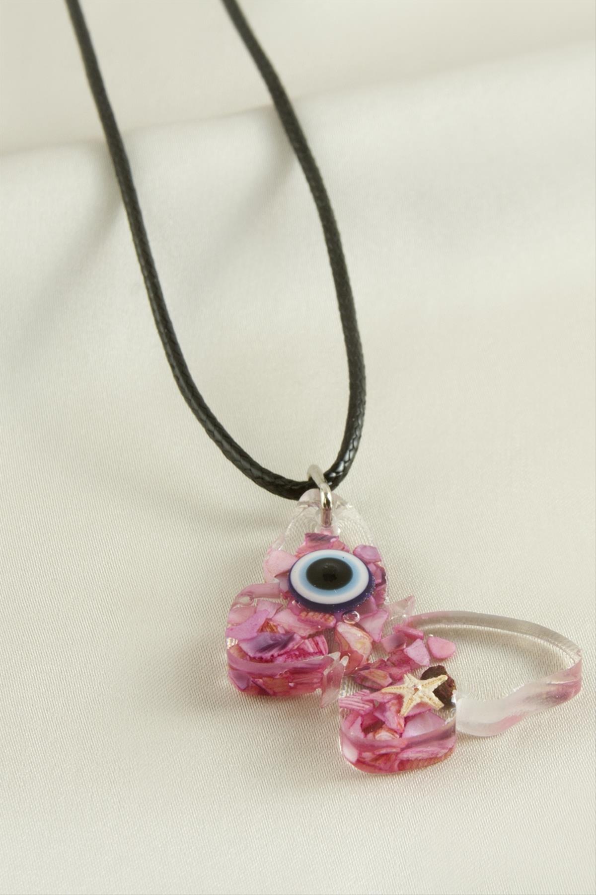 Epoksi Kolye; Ürün malzemesi deri ve epoksi malzemeden üretilmiştir. Ürün 1 sınıf kristal epoksi malzeme kullanılmıştır. Kolye deri ip uzunluğu 50 cm ve ucundaki epoksi 3,5 cmdir.
