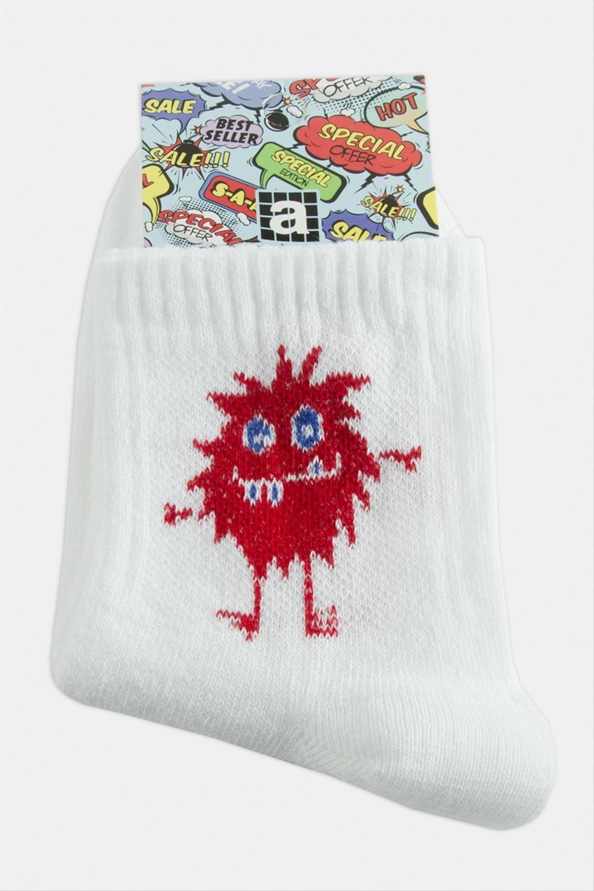 Çorap; Ürün malzemesi polyester ve üzeri desenlidir. Boyu 28 cm ve genişliği 8 cmdir. Ürün numarası 37-41 arasındadır.