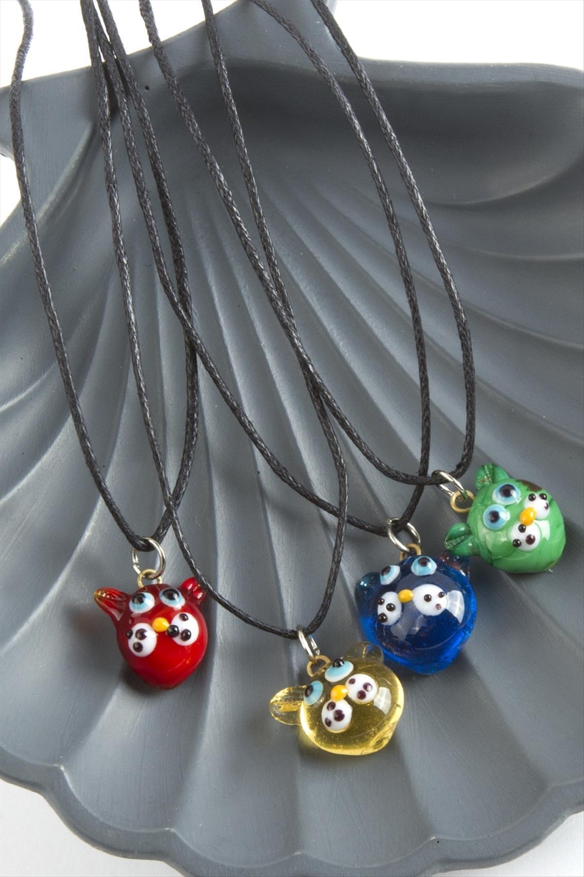 Cam Kolye; Kordonu vinlex deridir. Ürün ustalarımız tarafından atölyemizde tek tek el işçiliği ile üretilmektedir. İmalatımız da yerli cam ve orijinal italyan cam kullanılmaktadır. Cam ürünlerinde sanatsal bir işçilikle çalışılmaktadır. Ürün asortilidir. Siparişleriniz de karışık olarak gönderilecektir. Ürün cam boyu 1,5 cm ve ip boyu 45 cmdir.