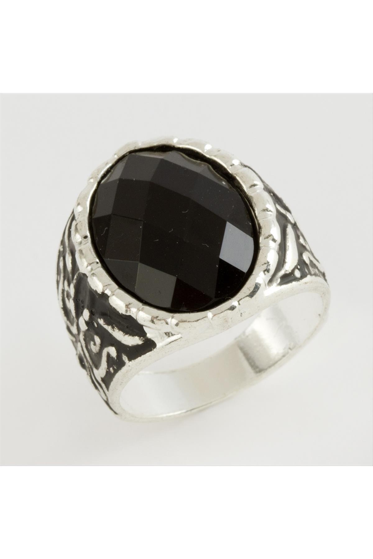 Kristal Taşlı Metal Erkek Yüzük