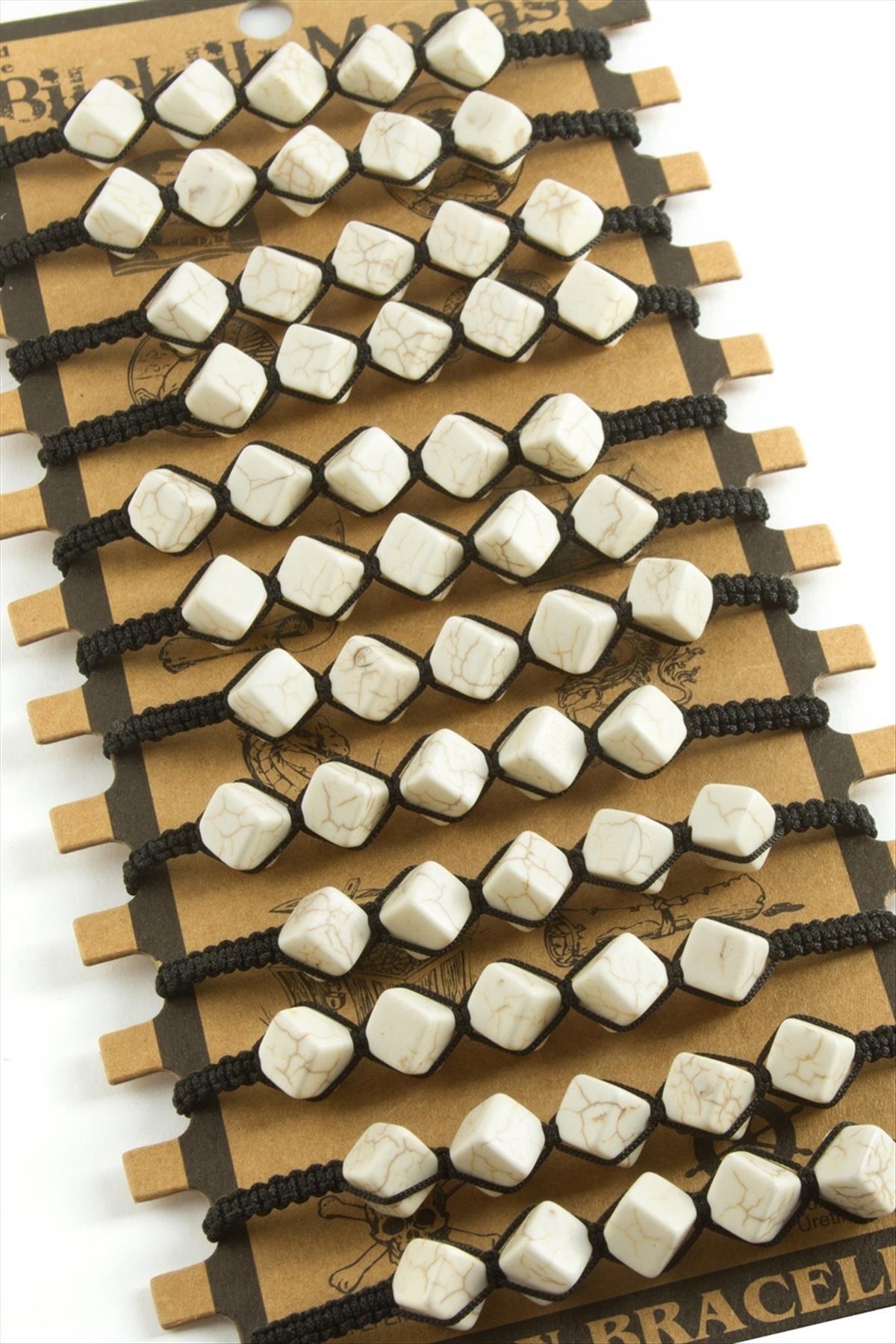 Bileklik; Ürün malzemesi turkuaz doağaltaş ve iptir. Ürün arkası asansörlüdür. Bileğe göre ayarlabilir. 12 adet alımlarınız kartla beraber gönderilecektir. Fiyat 1 adet için geçerlidir.