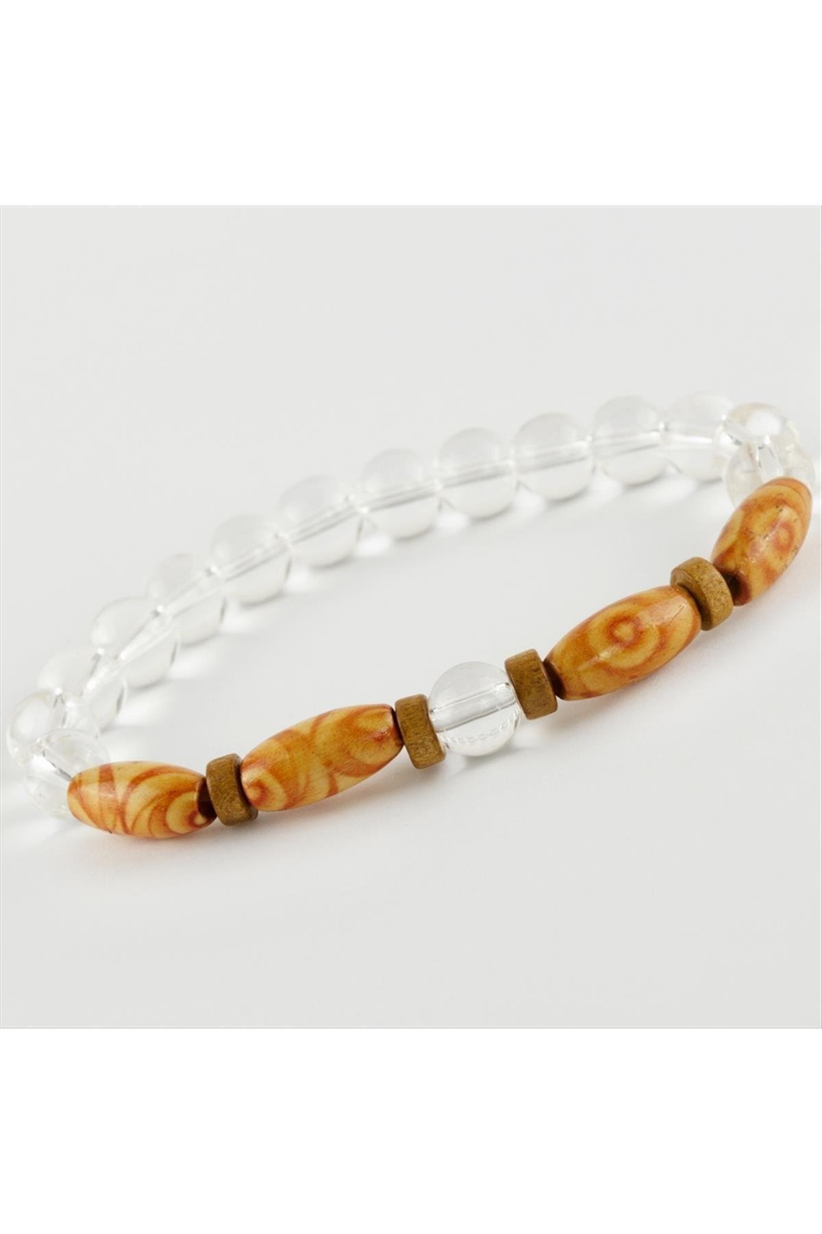 Bileklik: Kuvars taşı ve ahşap bulunmaktadır. Taşlar misina üzerine dizilmiştir.