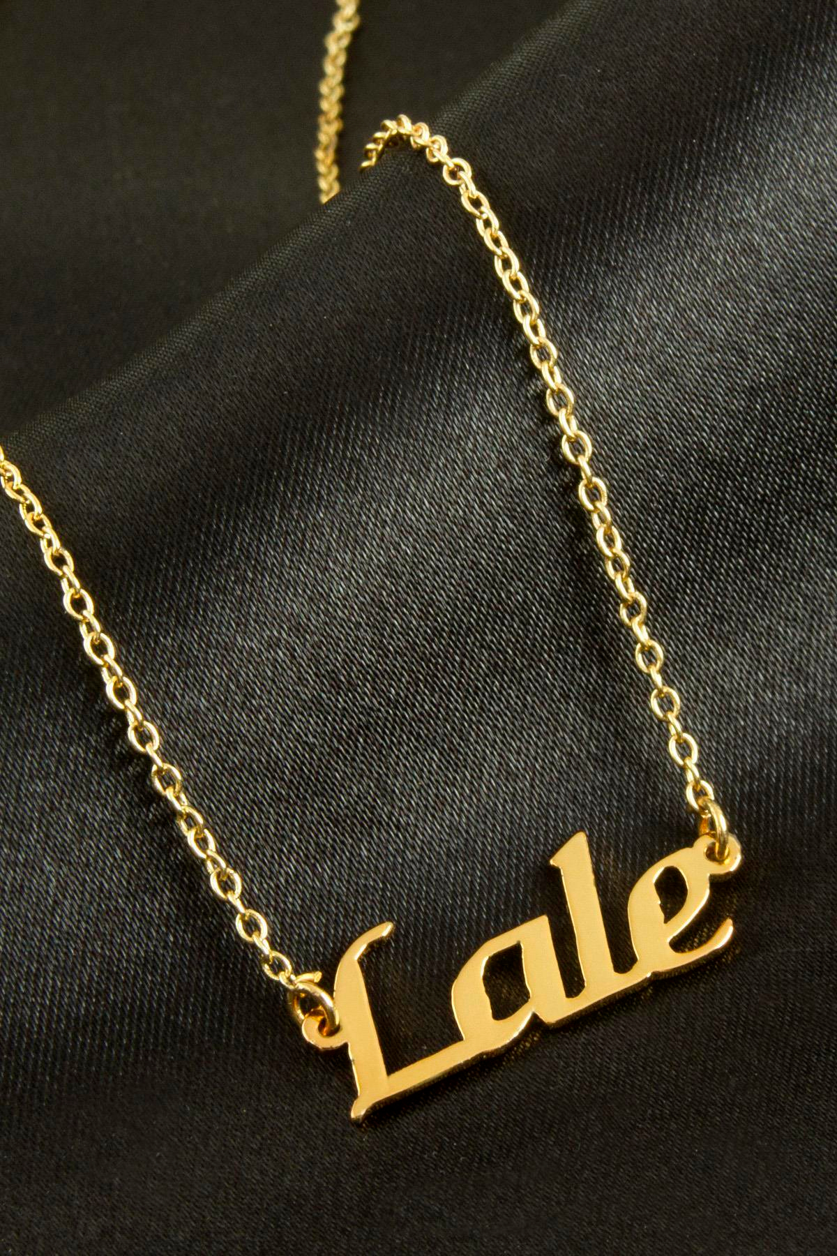 Lale isimli kolye. İsimli kolye pirinç madeninden ve altın kaplamalıdır. Kişiye özel üretilmektedir.Yazdırmak istediğiniz ismi bize mesaj olarak iletmeniz gerekmektedir. Kullanıma bağlı olarak uzun süre kullanıma uygundur. Ürün malzemesi 1.sınıf kalitededir. Ürün ve zinciri sarı renktedir. Ürün zincir boyu 45 cm ve ürün üzerindeki isimler yaklaşık 3 cmdir. İsim boyları ürün ismine göre degişiklik göstermektedir.