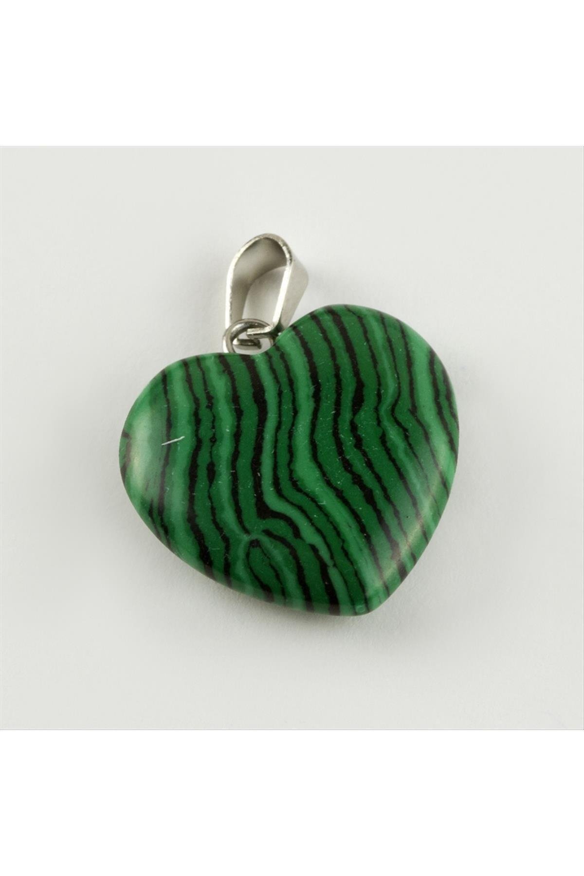 Ürün kolye ucu olarak kullanılmaktadır. Doğaltaş malakitdir. Şekil olarak kalp biçimindedir. Üzerinde ip veya zincir geçirmek için metal kısımı bulunmaktadır. Uzunluğu yaklaşık olarak 2 cmdir. Ürün zincirsiz olarak gönderilecektir.
