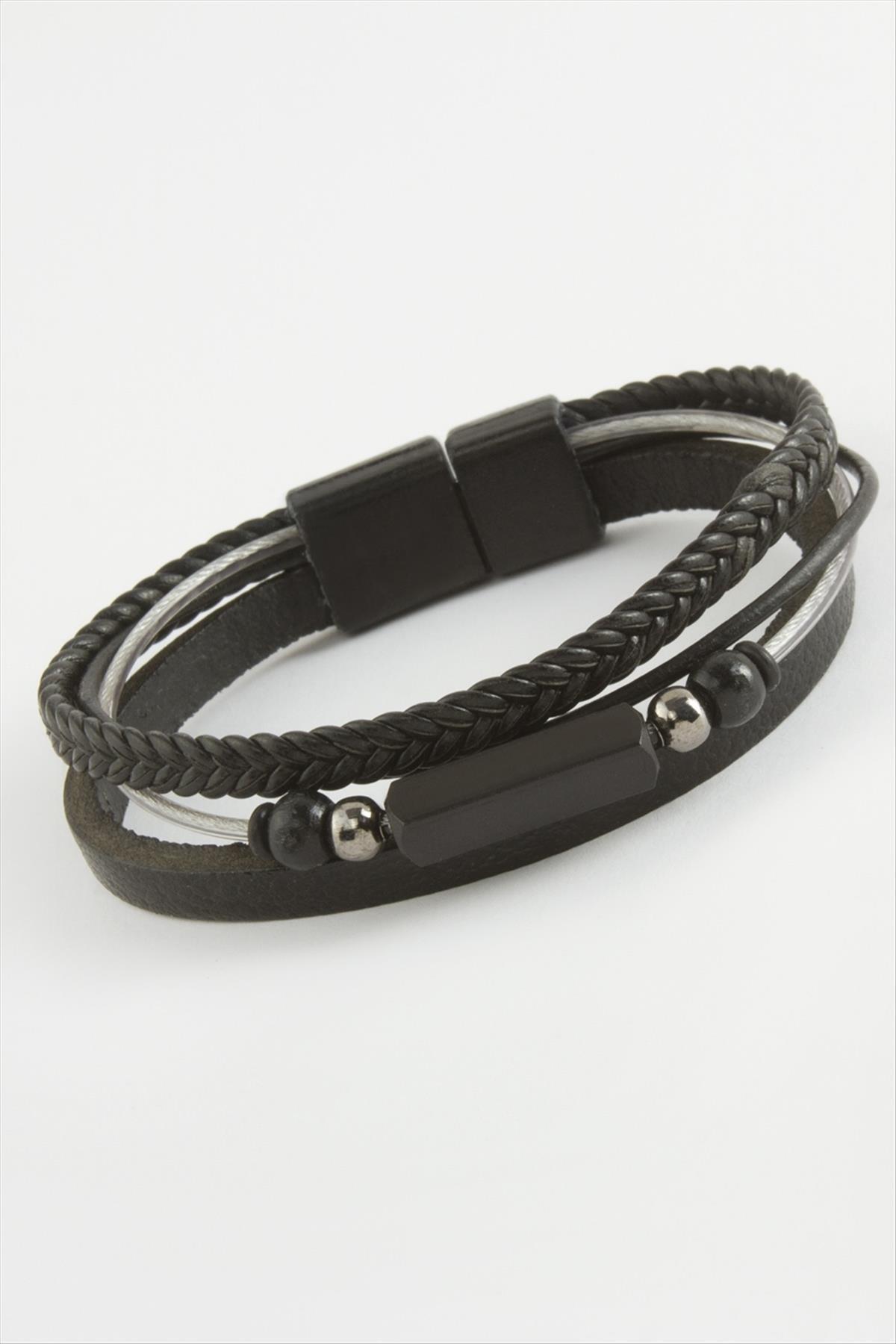Bileklik; Ürün malzemesi metal ve orjinal deridir. Bileklik uzunluğu 20 cmdir. Ürün ucu geçirmeli mıknatıs bulunmaktadır. Ürün üzerindeki metal parça prinç ve lazer kesimdir.