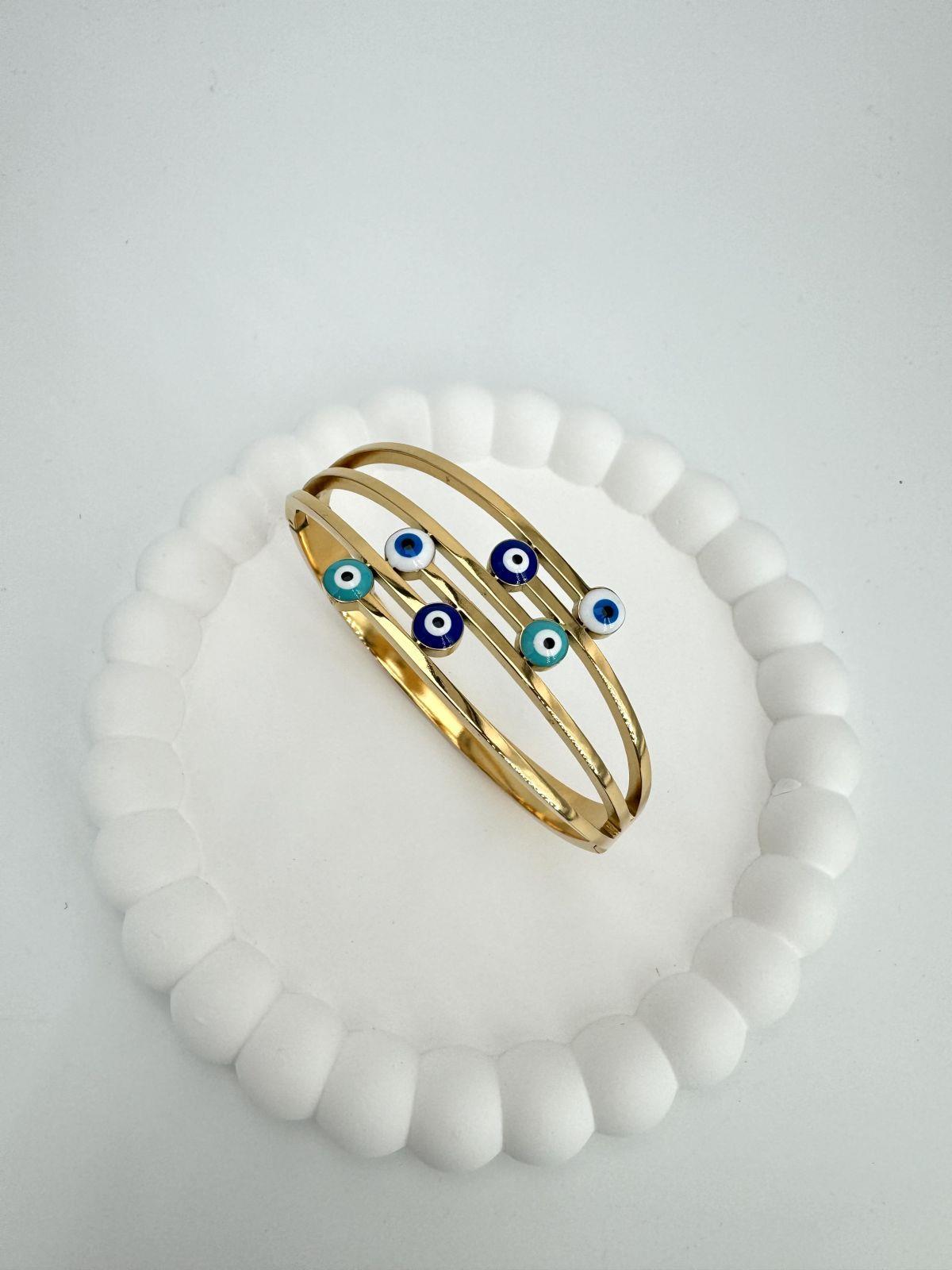 Nazar Boncuk  Detaylı Taşlı Çelik Kelepçe (Gold) 2097